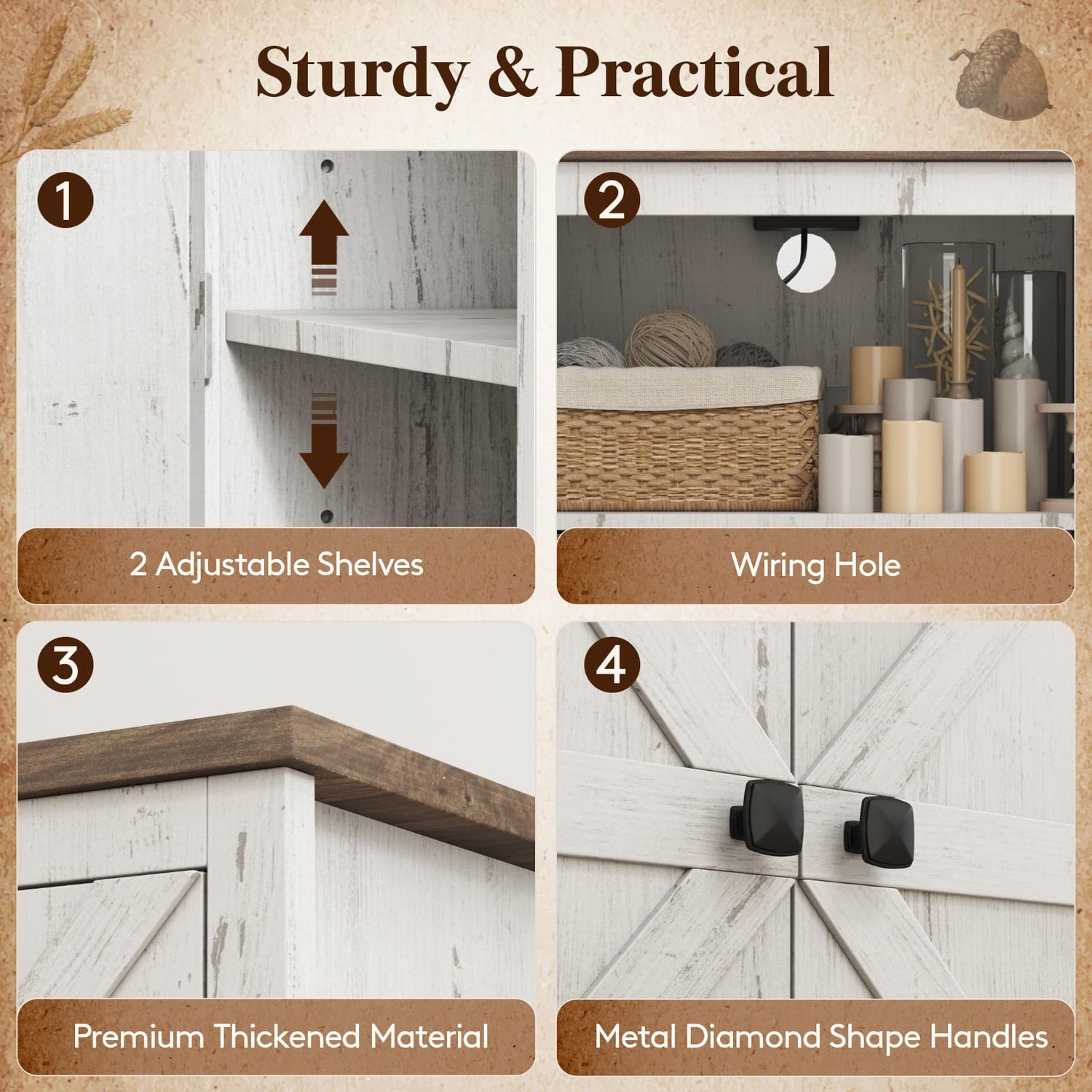 - Large Storage Space: The end table has a spacious storage cabinet with adjustable shelves and wire management hoes; it can be used as a side table, coffee table, or bedside table