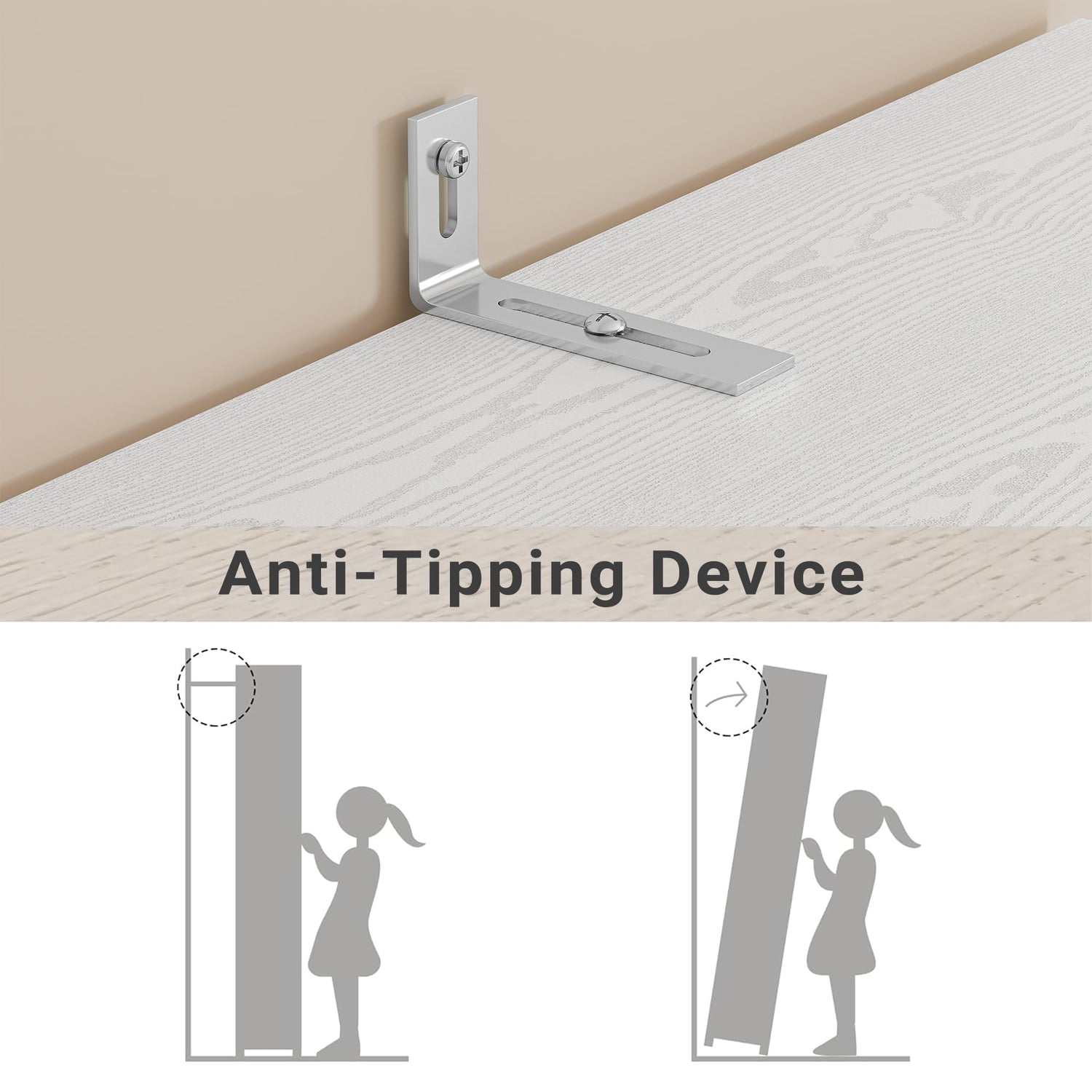 - Durable and Sturdy: The bedroom wardrobe armoire is made of high-quality MDF wood, and the anti-tip device ensures stability and durability. It is also waterproof and scratch-resistant and consists of durable drawer slides and clear mirrors for long-term use