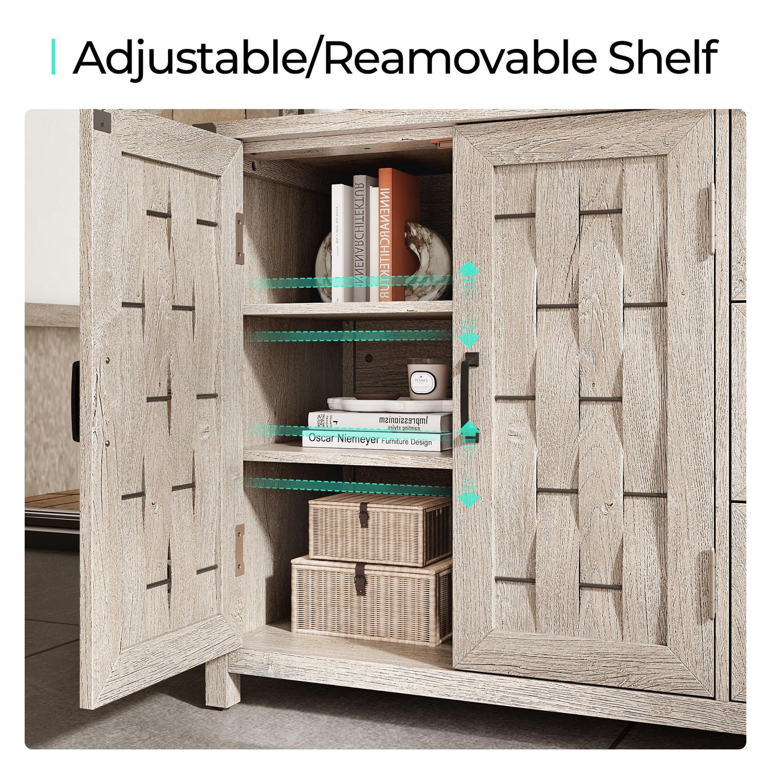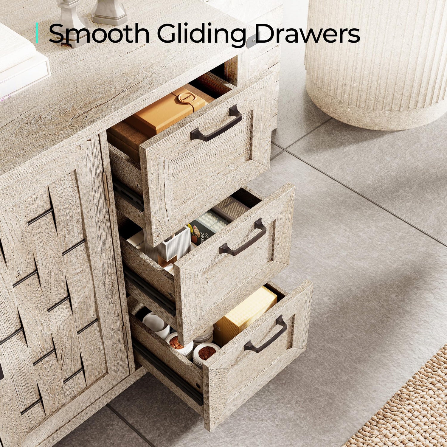 LINSY HOME Farmhouse Sideboard Buffet Cabinets, 43" W Coffee Bar Storage Cabinets with 3 Drawers and 2 Doors, Rustic Accent Cabinet for Dining Room, Kitchen, Home Bar and Living Room, Light Gray