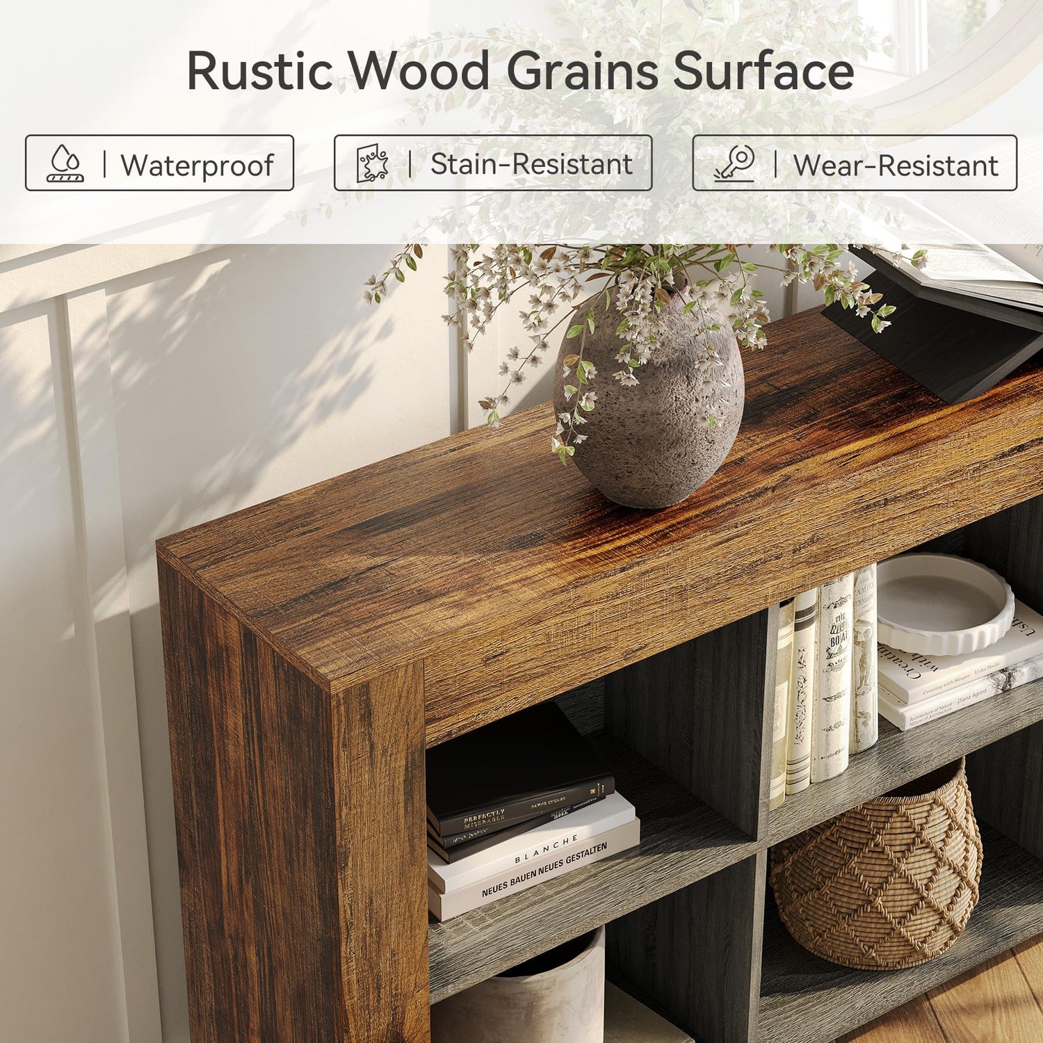 LITTLE TREE Console Table with Storage, 63-Inch Narrow Long Sofa Table, Entryway Table with 6 Cubes, Farmhouse Storage Shelves for Entryway, Living Room
