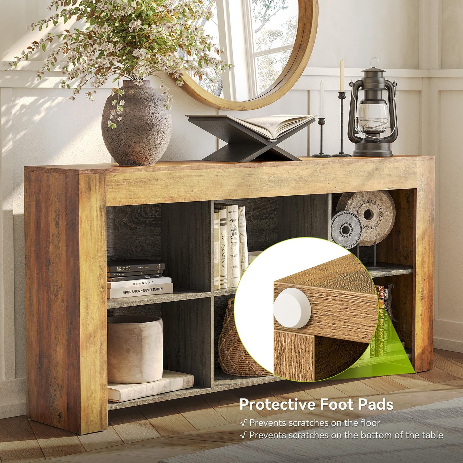 LITTLE TREE Console Table with Storage, 63-Inch Narrow Long Sofa Table, Entryway Table with 6 Cubes, Farmhouse Storage Shelves for Entryway, Living Room