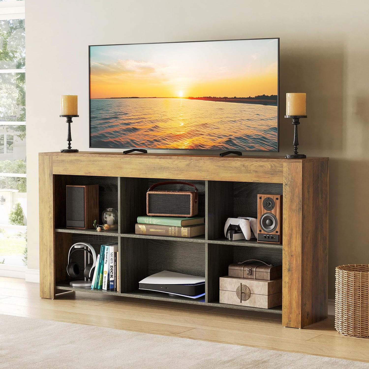 • Large Storage Shelf: The dimensions of the console table are 63" L x 11.8" W x 31.5" H, featuring a very spacious tabletop. It offers 6 open storage cubes to beautifully display decor while maintaining a tidy space