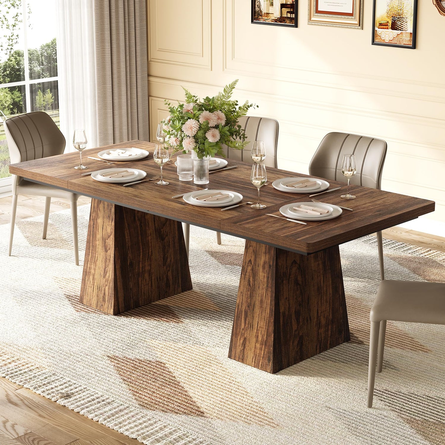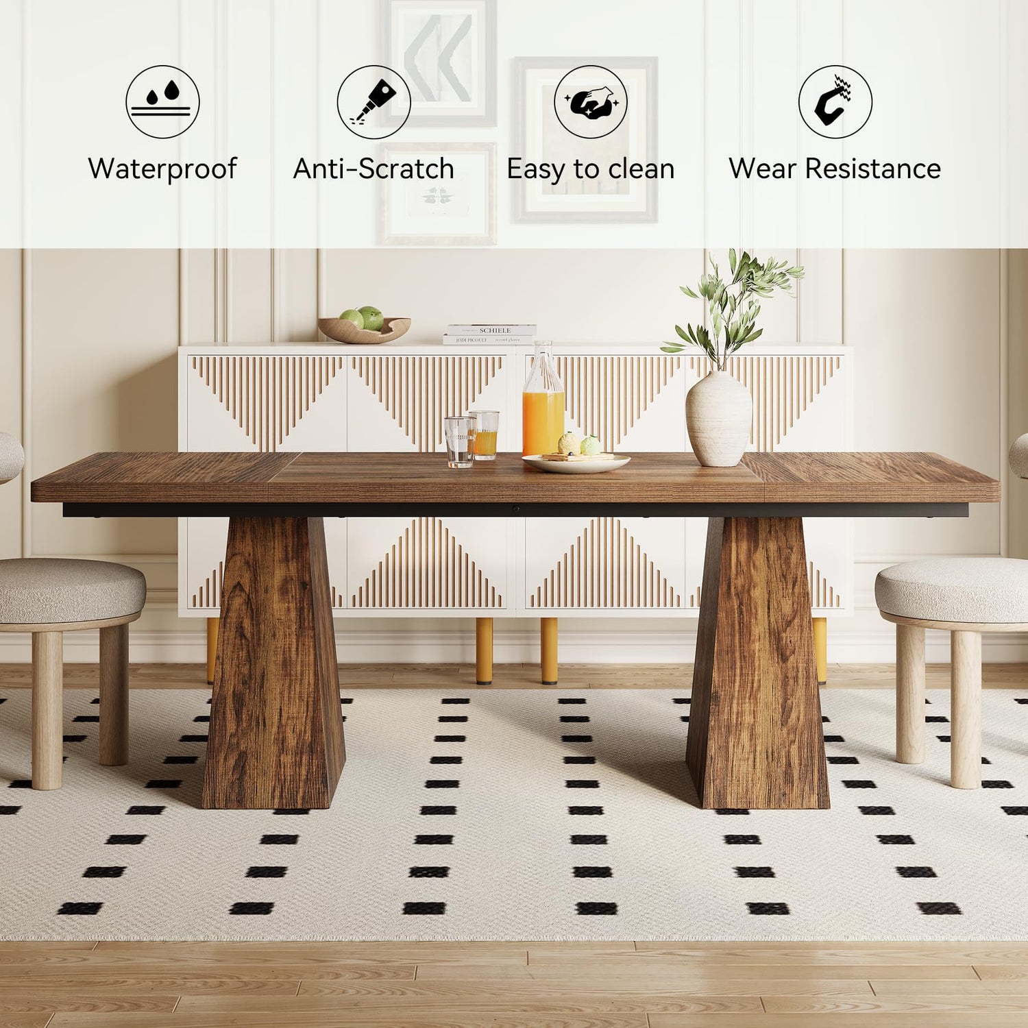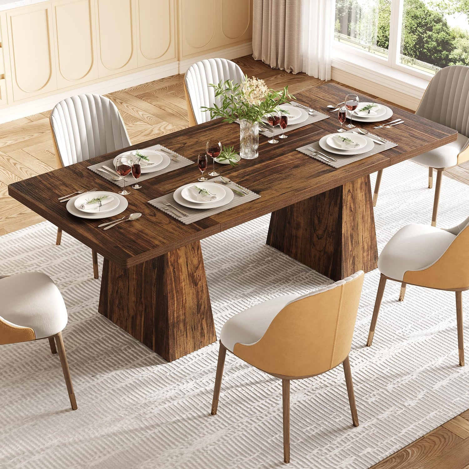 LITTLE TREE Dining Table for 6 People, Wooden Dining Table, Rectangle Table with Heavy Duty Legs, Modern Dining Table for Kitchen, Dining Room, Brown