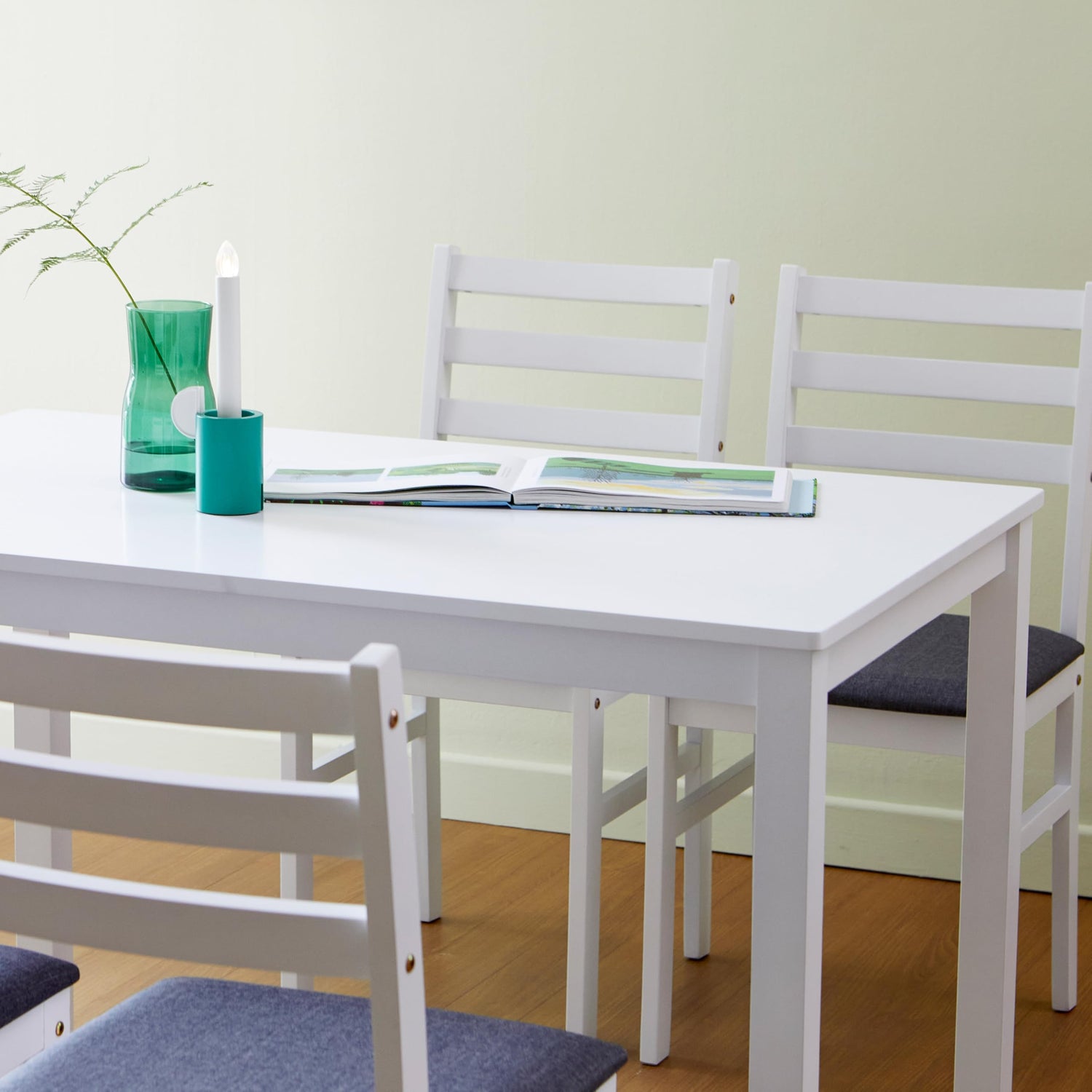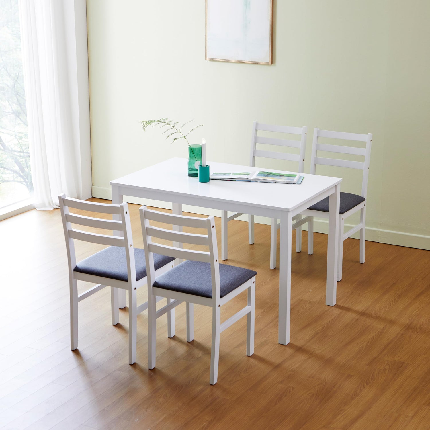 - 【Dining Table Set for Four】 This 5-piece kitchen dining set includes a rectangular dining table and 4 wooden dining chairs. The table measures W 43.3" x L 27.6" x H 29.3" and the chair measures W 15.9" x L 18.7" x H 35".