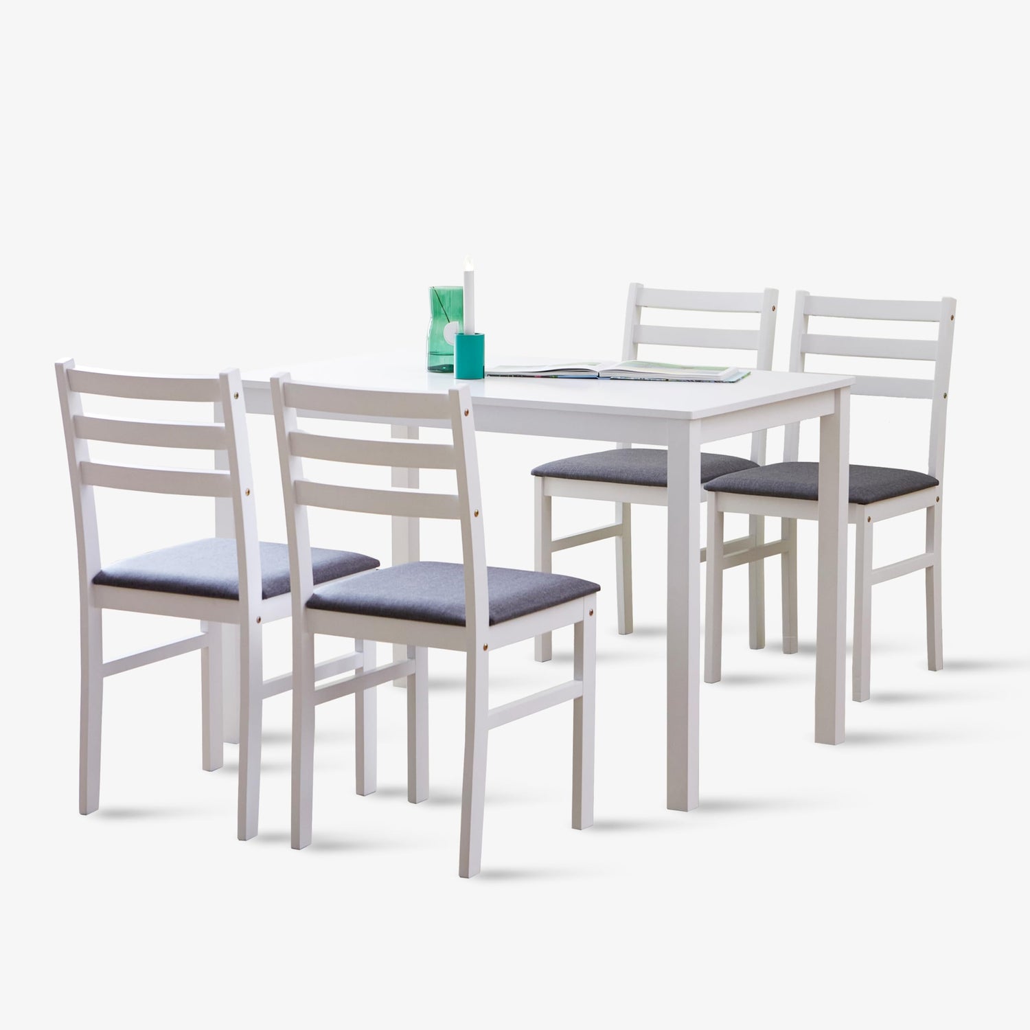 Livinia Seattle 5-Piece Wooden Dining Table Set for 4, Modern Farmhouse Kitchen Dining Room Set with Solid Wood Ladder Back Chairs for Small Space (White)