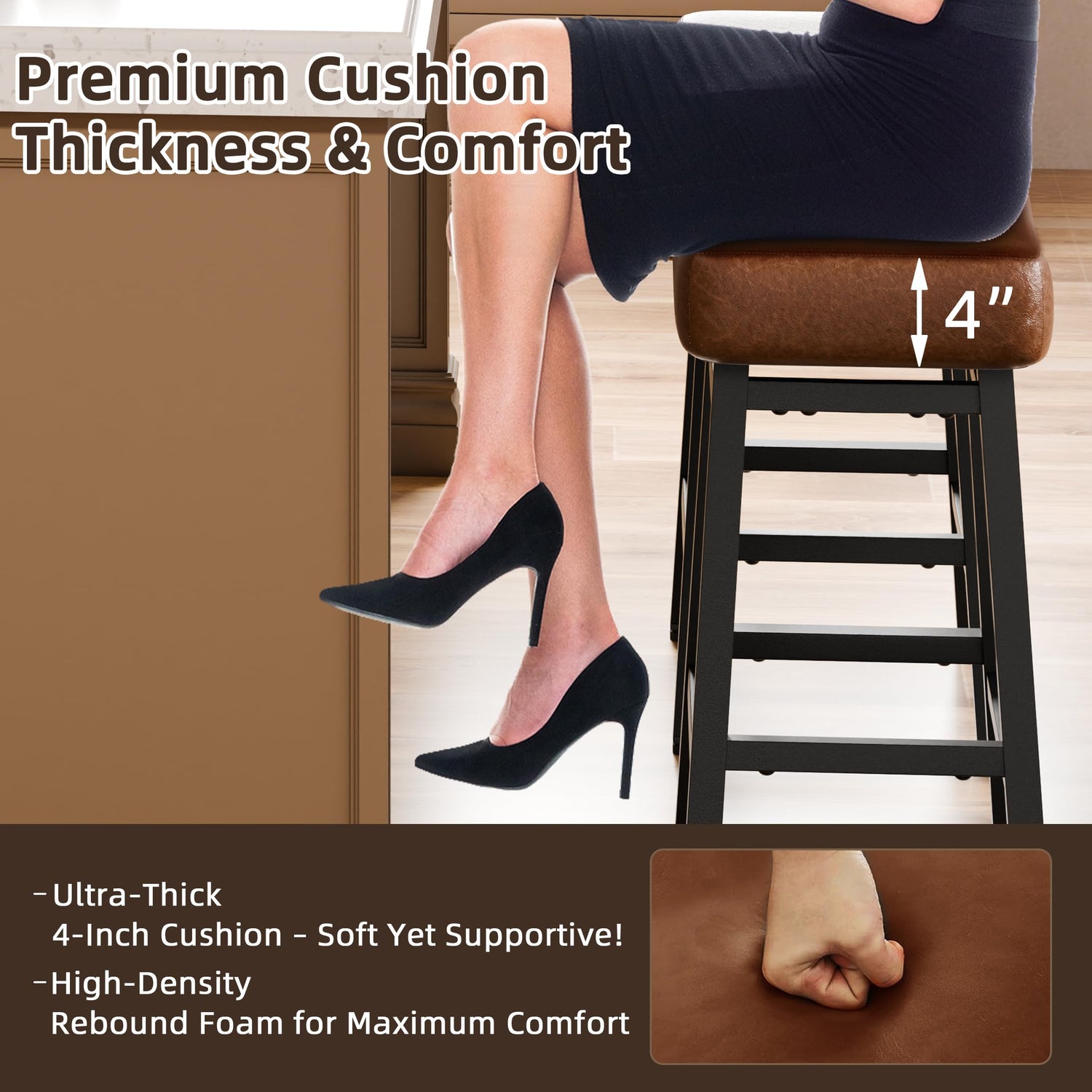 - Tough Construction You Can Trust: Industrial-grade 1.18" square steel frame outlasts typical metal bar stools 0.8" tubing - (400 lb capacity - 25% above industry standard). Scratch-resistant PU lLeather bar stools wipes clean in seconds - survives kids' juice spills & pet claws. Non-marking feet + anti-wobble crossbar keep floors pristine. REAL TALK: Thicker steel than 80% of competitors.
