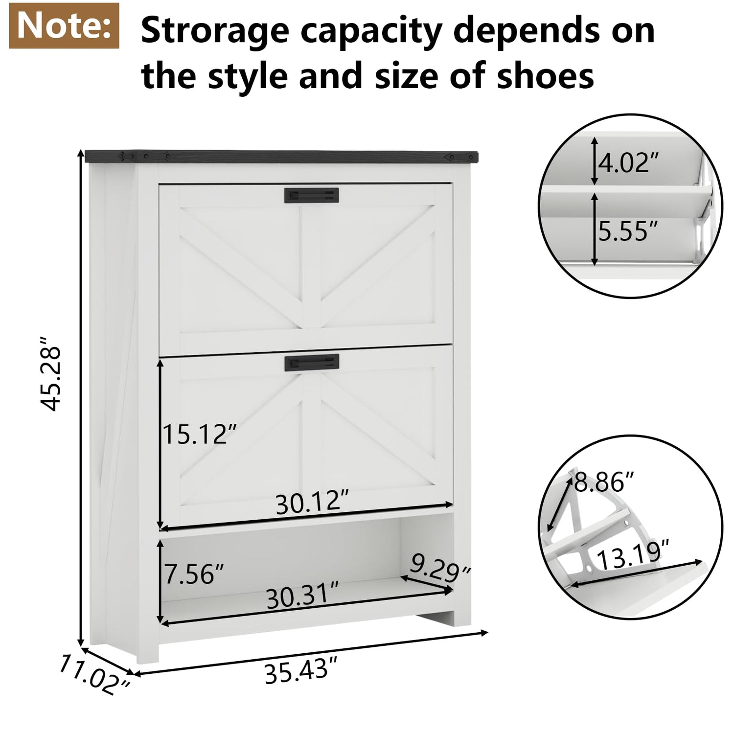 - 【High-caliber Quality & Sturdy Construction】This Loomie farmhouse shoe cabinet is made from durable commercial grade laminate that will withstand all the daily stress that is thrown at it through the years, ensuring a consistent chic, minimalist look. Loomie shoe organizer is a safe purchase when it comes to quality. Anti-tipping kits and reinforced structure improve the stability. You don't worry about it falling by accident. Overall, it will get the shoe storaging job done and look good doing it. It's a perfect size shoe cabinet for every home space.