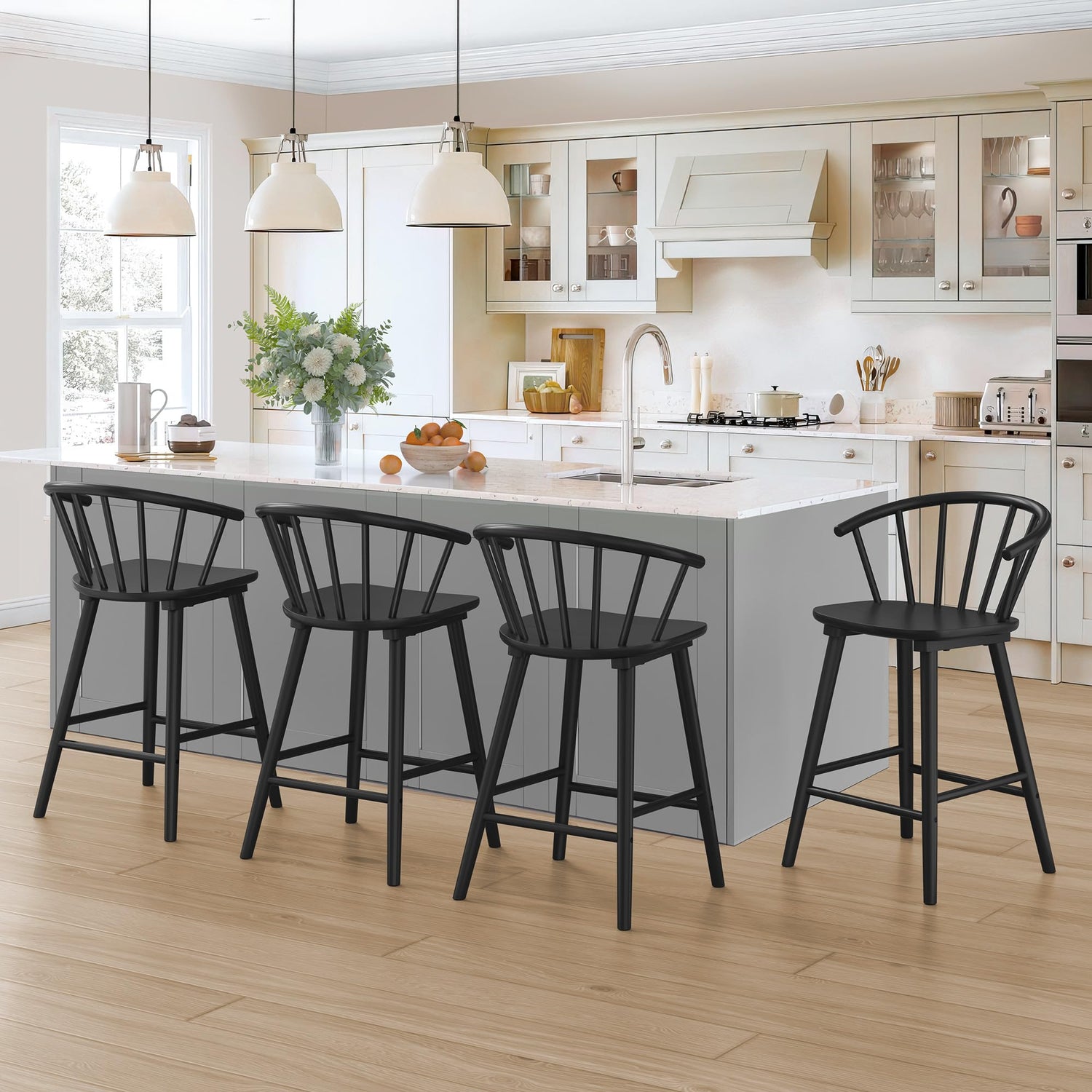 LUE BONA Bar Stools Set of 4, Black Farmhouse Barstools with Semicircular Backrest, Mid Century Modern Counter Height Bar Stools for Kitchen Island, 24 Inch