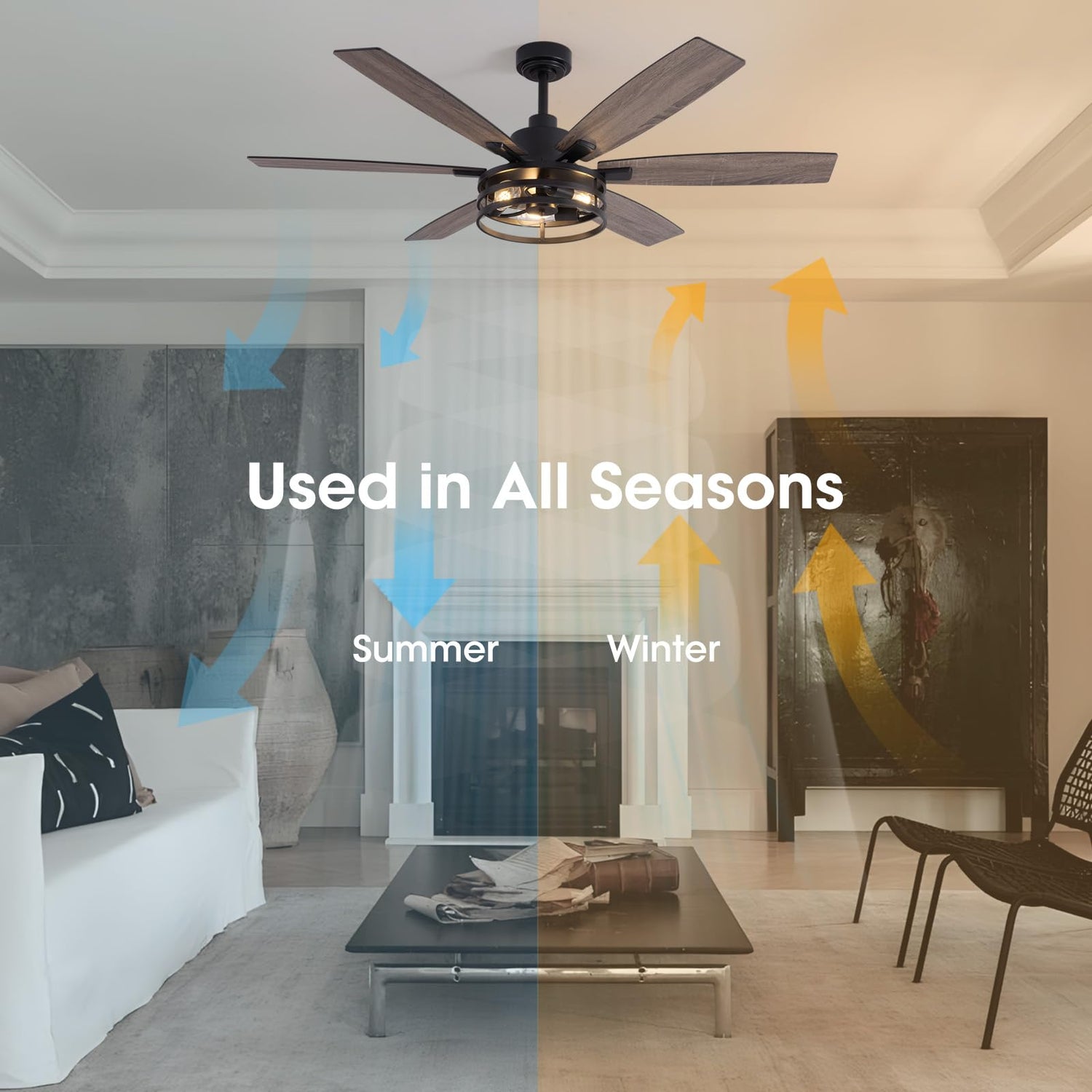 - Two Blades Optional: LuminFan 60 inch caged ceiling fan is a modern design with 6 blades and double-color blade finish (walnut and black wood grain color ), which can be flipped and installed according to personal preference.Perfect for any indoor space and covered patio use.