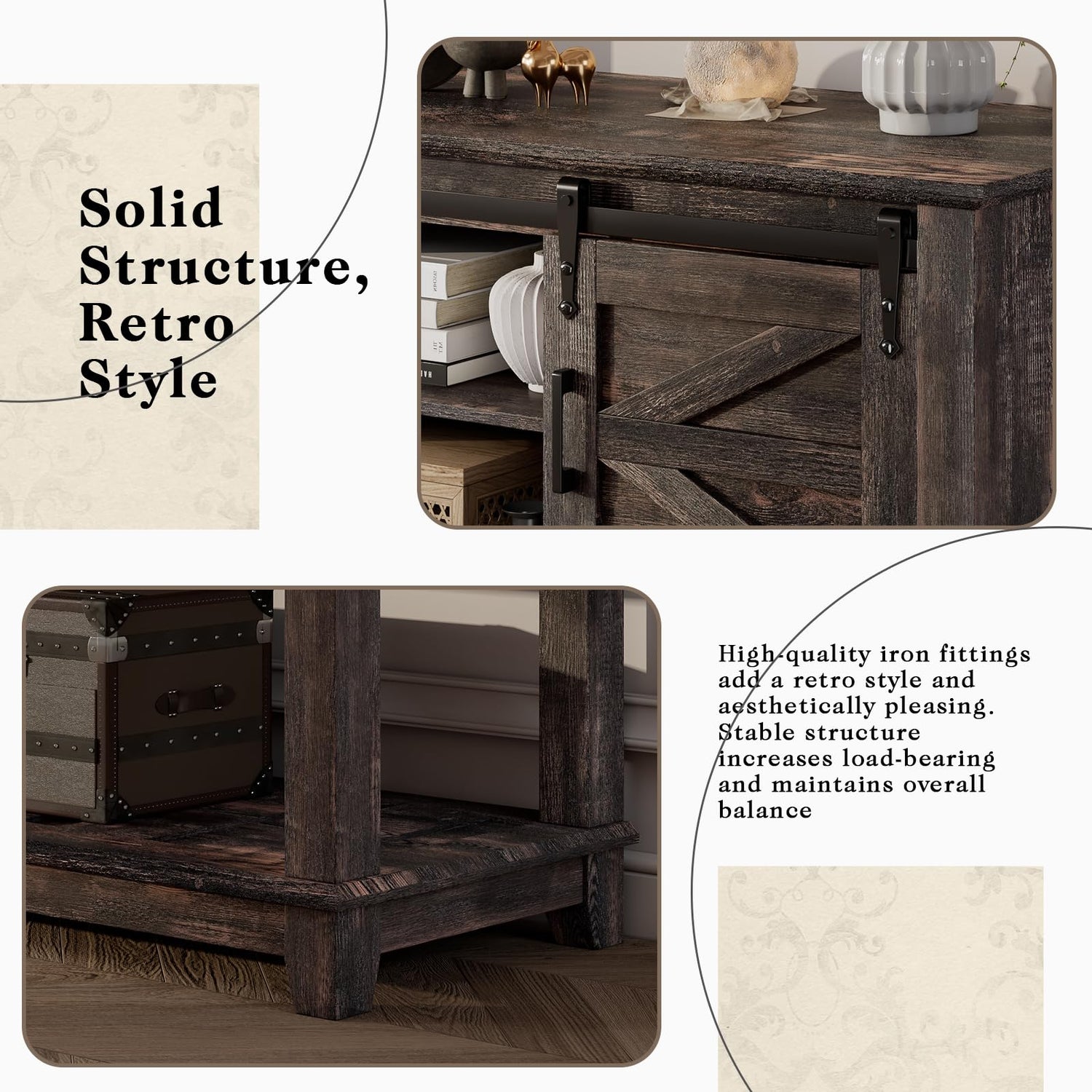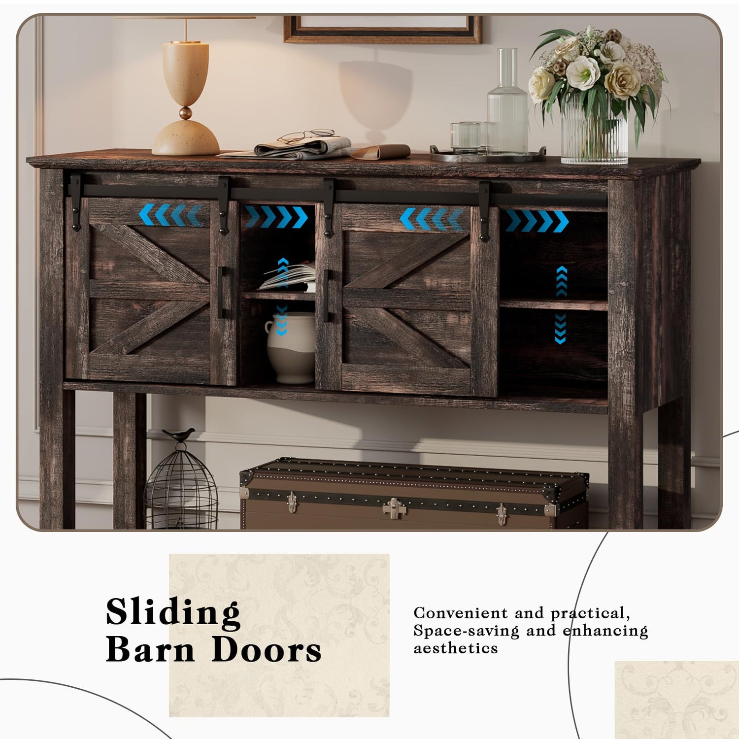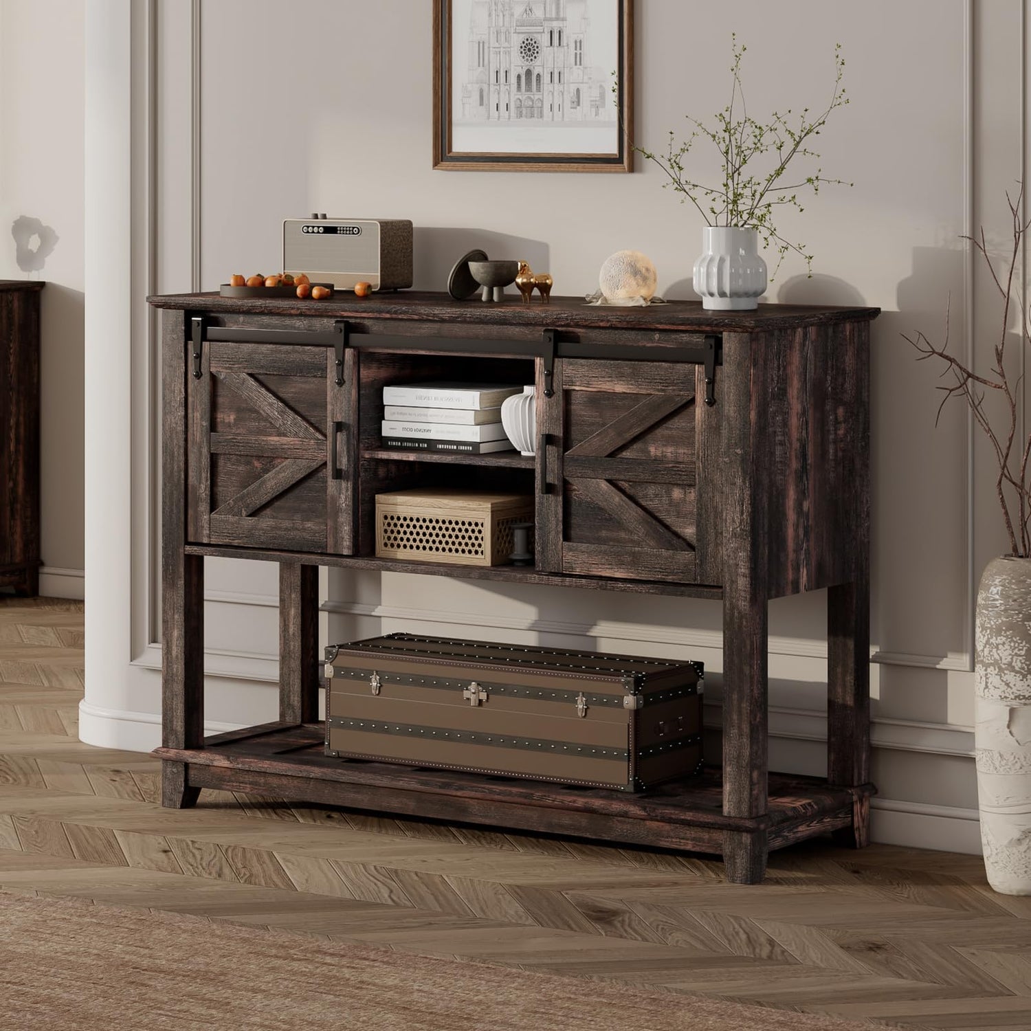 LUXOAK Farmhouse Entryway Table with Sliding Barn Doors, 46" Sofa Table for Living Room, Console Table with Storage, Dark Rustic Oak