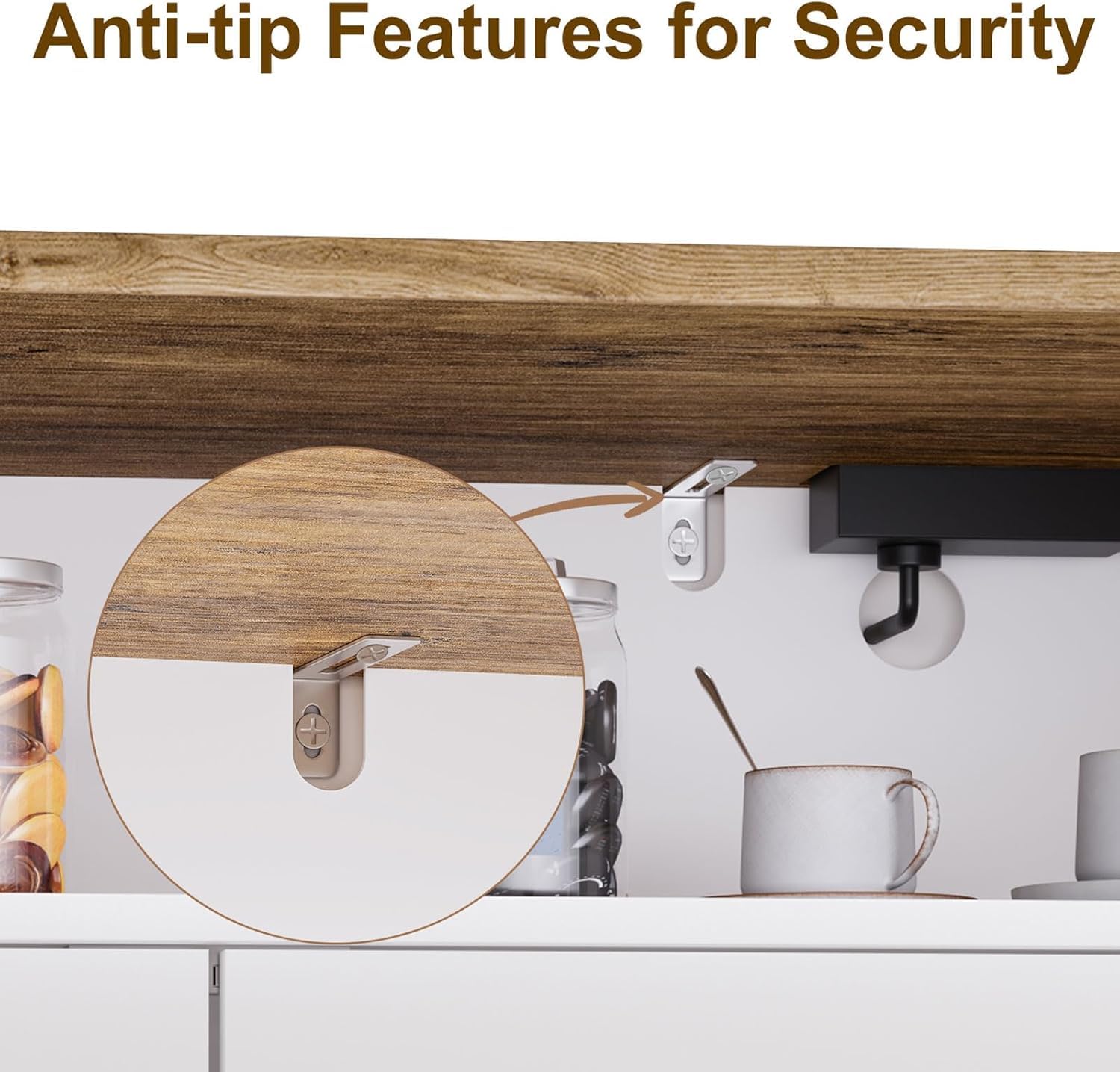 - [Convenient Power Outlet]: The coffee bar cabinet features a built-in power outlet with 2 AC outlets and 2 USB ports, allowing you to easily plug in a coffee maker, lamp, or charge smartphones and tablets. The hidden cord design keeps your living room neat and clutter-free