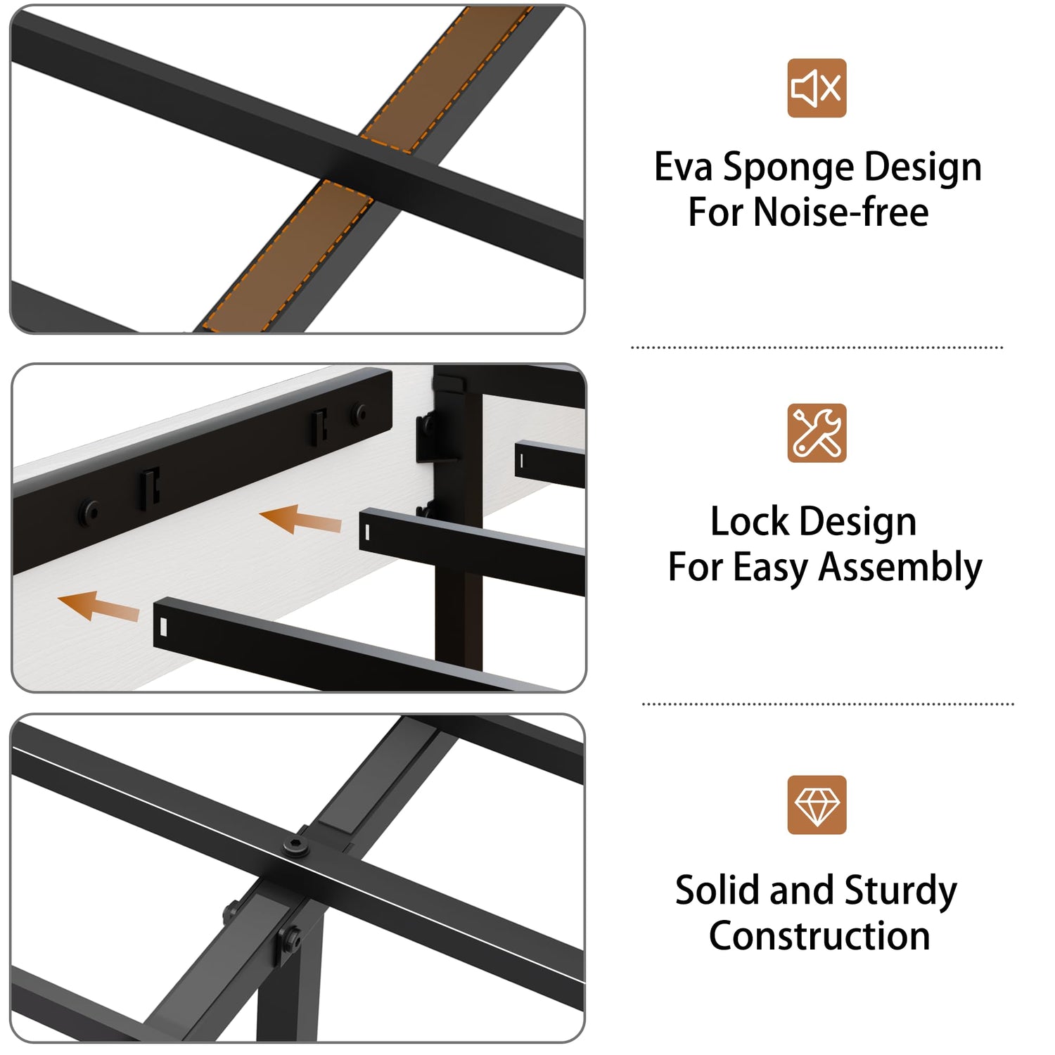 - No Spring Box Needed: Metal slats provide excellent mattress support, ensuring durability and longevity. Designed with rubber lock metal slats, assembly is quick and effortless, with no mattress sliding. Most importantly, it supports your mattress, preventing sagging or shifting.