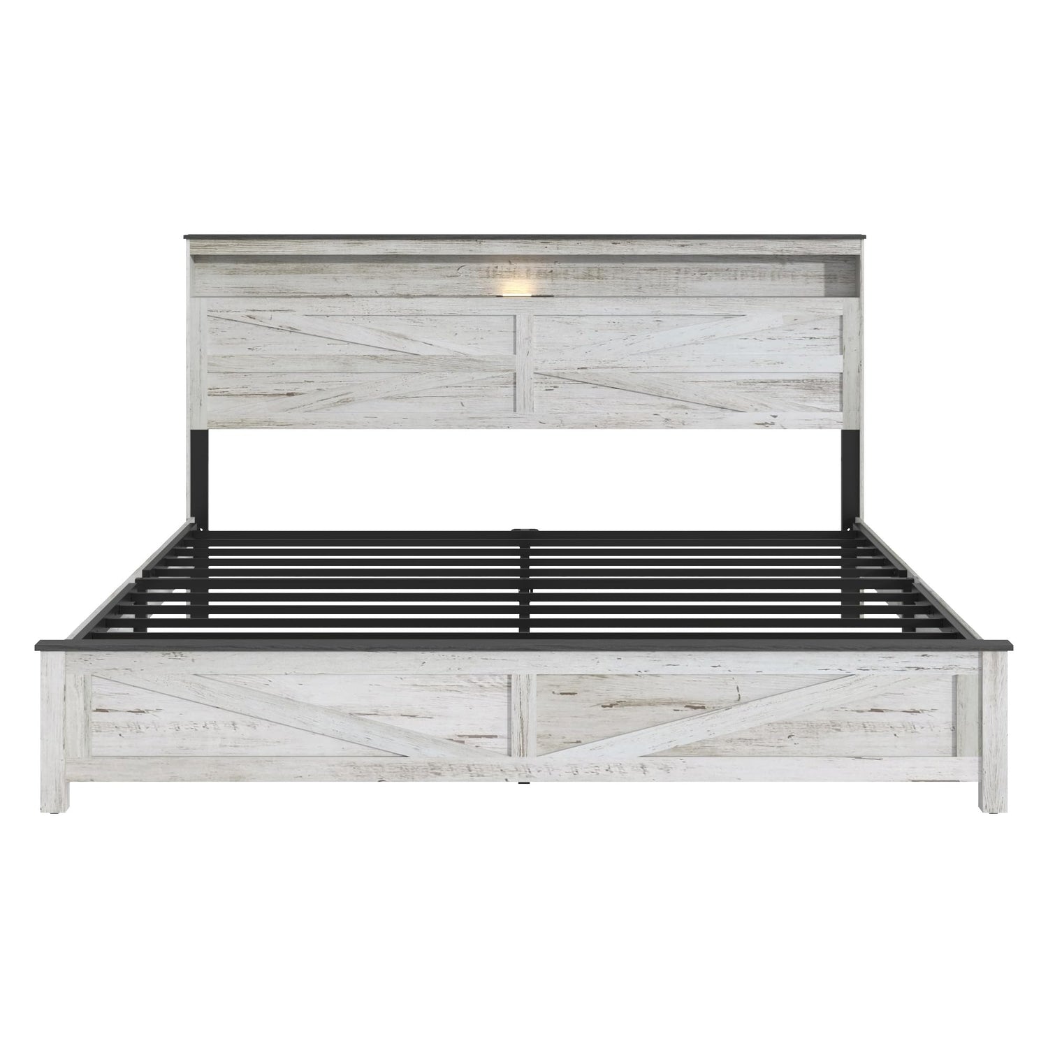 - King Size Farmhouse Bed Frame With Storage Shelves: The king size bed frame with headboard features two tiers of storage, provide ample space for storing books, clock, iPhone, paper, watch glasses and keep your headboard tidy, it's convenient for your life, all small items are within reach .