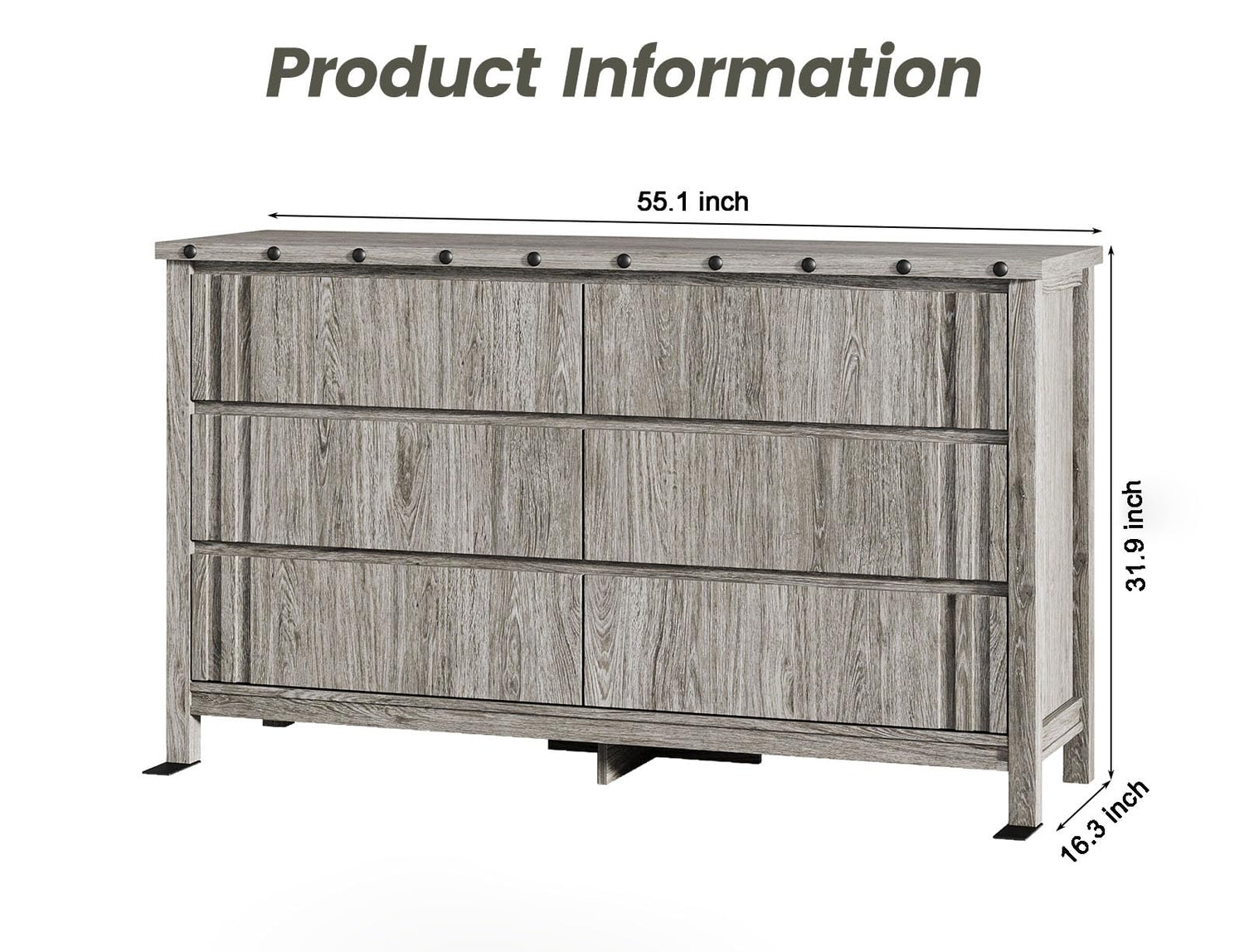 - 【Farmhouse Dresser Design】This 6-drawer dresser for bedroom features hand-carved line panels and hidden handle that enhance any space. Perfect as bedroom furniture or living room storage, its farmhouse design adds rustic elegance while providing ample organization with deep drawers,which is a good blend of practical and decorative.