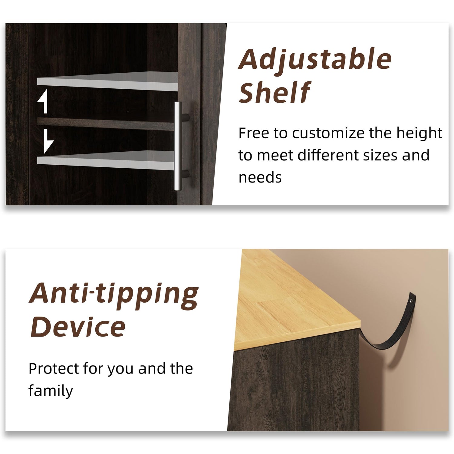 - [Modern Design for Any Decor] Three classic colors, white, gray and black, are available. With it smooth-running drawers and metal handles, your items can be easily stored or taken out. Meanwhile, the anti-tipping device on the back of the cabinet is designed to prevent accidents from happening, so that you can use it with more confidence.