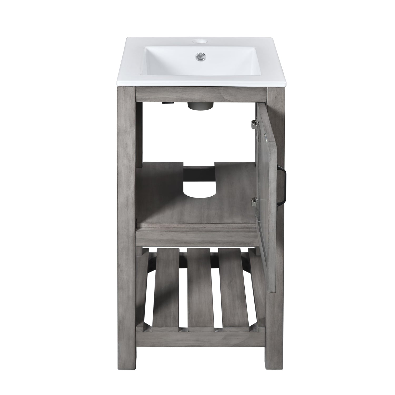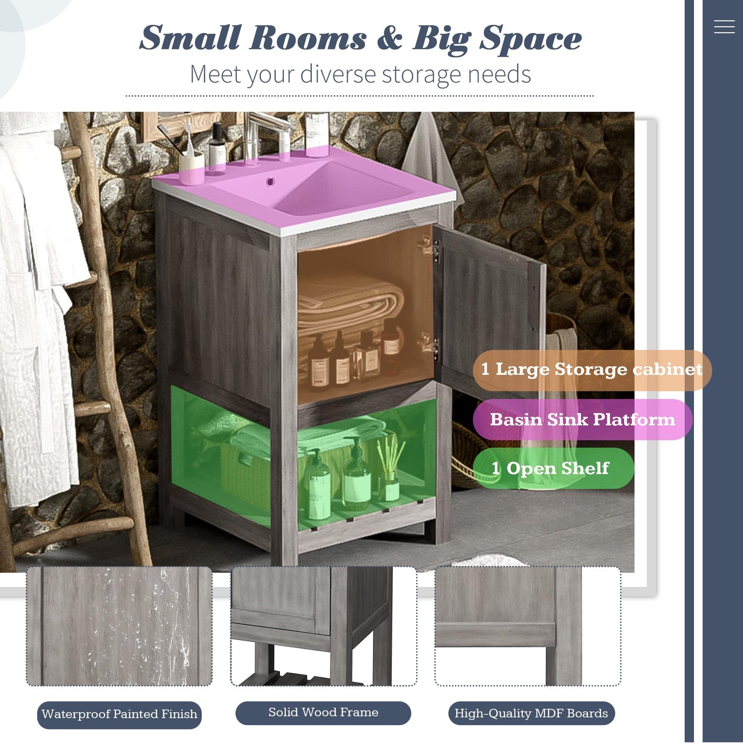 Merax 16" Farmhouse Bathroom Vanity with Sink, Freestanding Small Bathroom Vanity Storage Cabinet with Open Shelf, Solid Wood Frame, Ceramic Sink