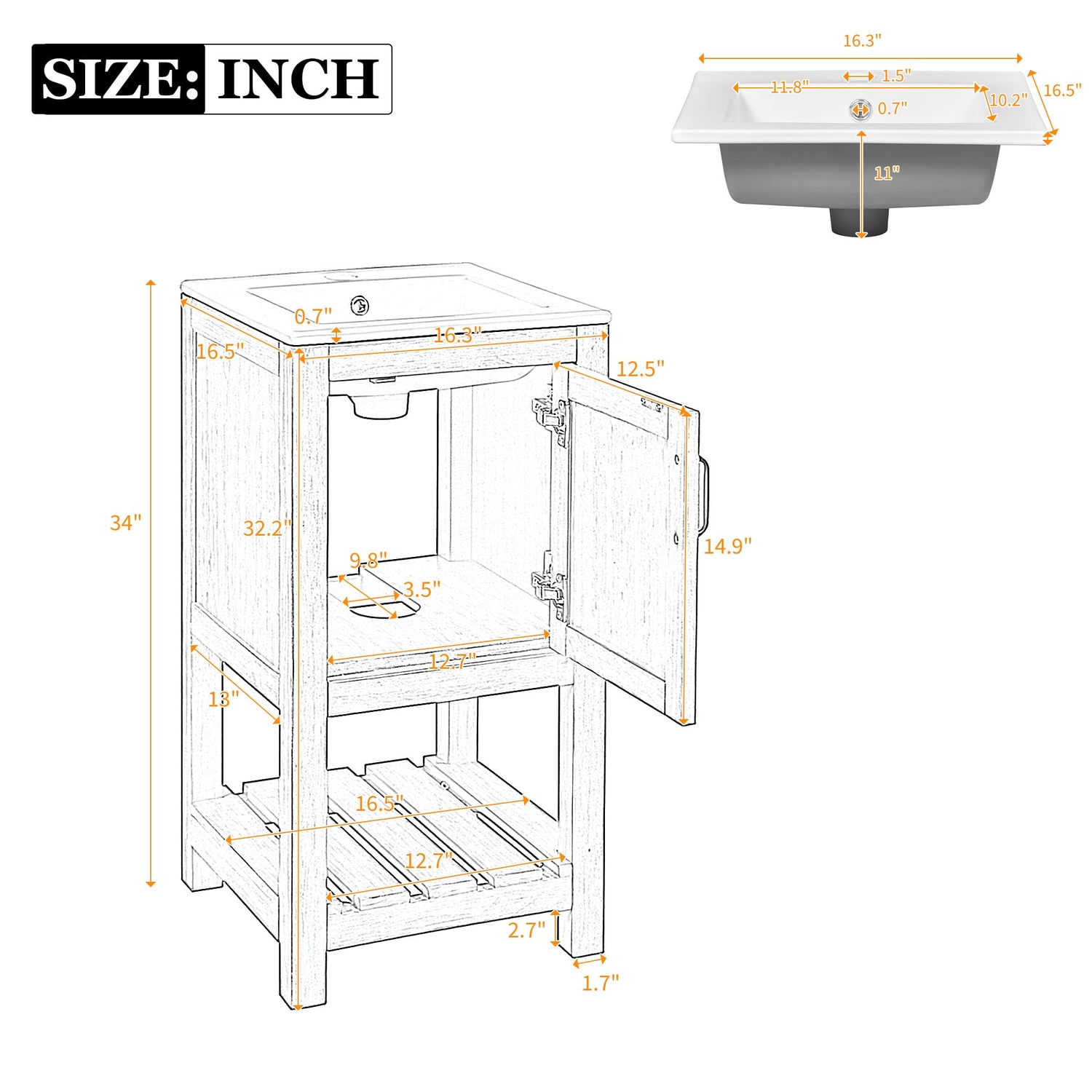 - Perfect for Small Bathroom - Measuring 16.3"L x 16.5"W x 34"H, this small bathroom vanity with sink is the perfect addition to any bathroom, providing plenty of storage space as well as a functional design that meets your everyday needs. Easy to install with labeled parts and detailed instruction.