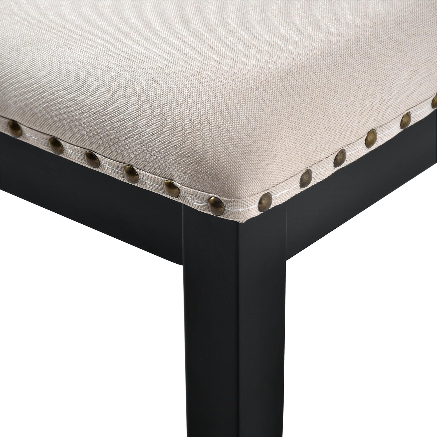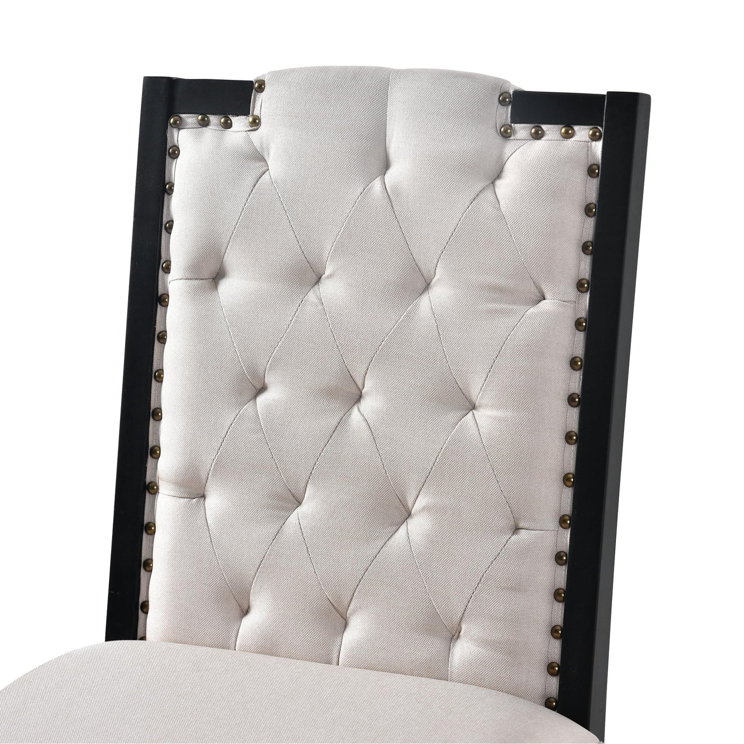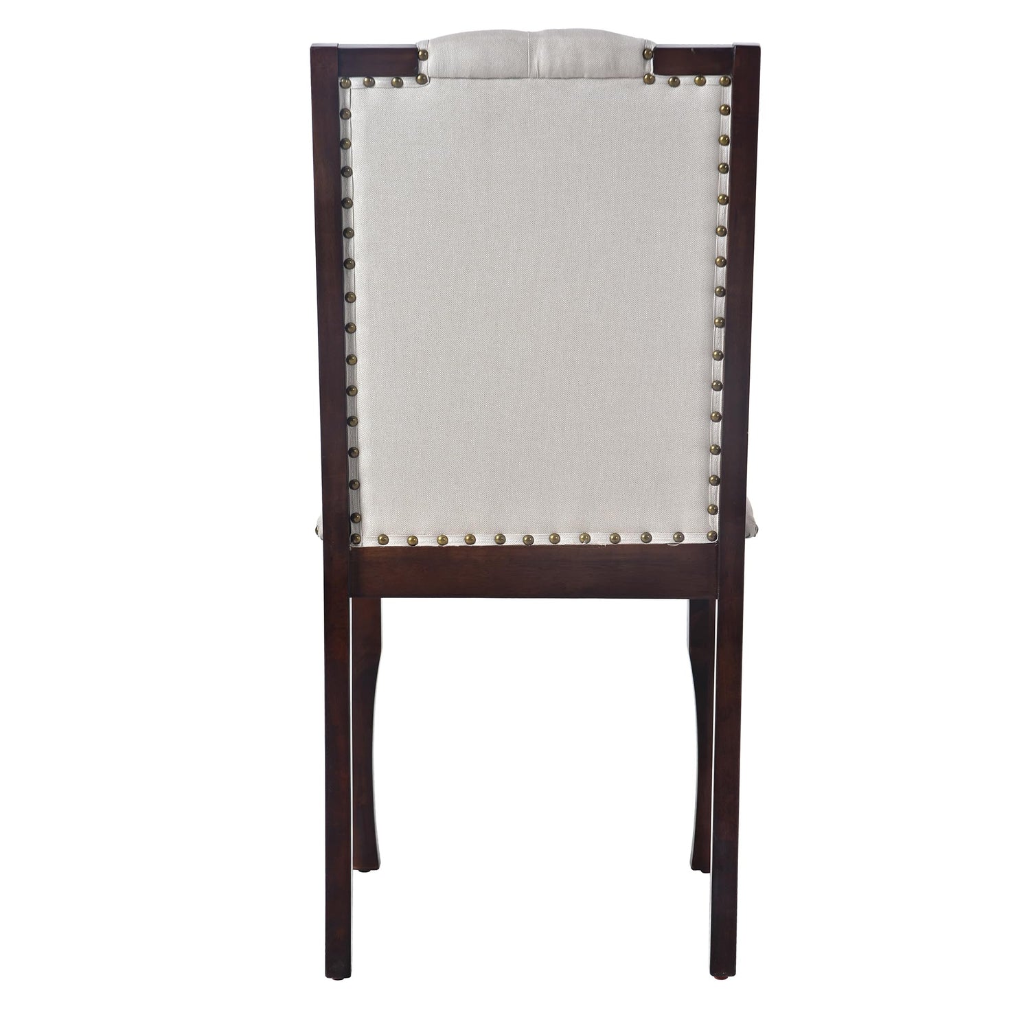 - 3. Comfortable High-Back Tufted Chairs: The four upholstered chairs feature curved high backs with decorative rivet details and plush padding, providing excellent lumbar support and comfort during extended meals and gatherings.