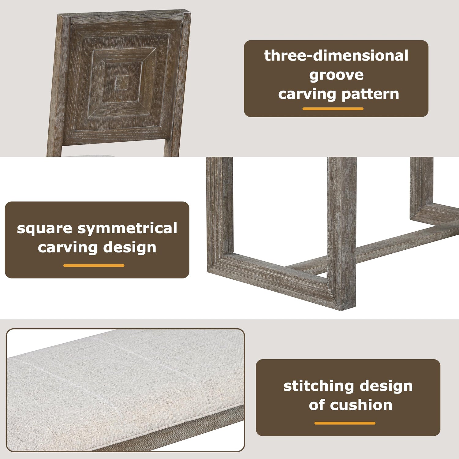 - 【Unique Design】The trestle bases of the table and bench boast a captivating three-dimensional groove carving, harmoniously complemented by the sleek square symmetry of the chair backrests' intricate carving, creating a timeless ambiance that will endure through countless meals and gatherings.