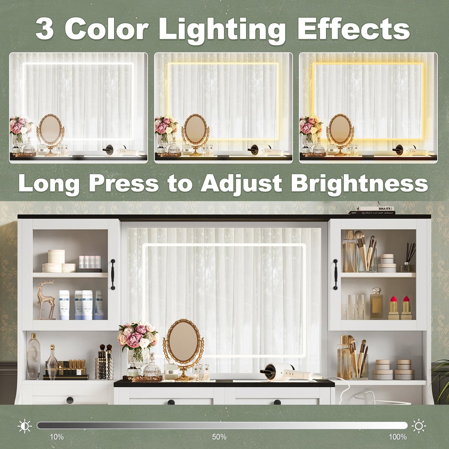 • [3 Color Lighting Modes] The dressing table is equipped with a touch button, which allows you to easily adjust the light with three different effects, perfectly adapt to a variety of ambient light, to create the most comfortable makeup environment for you. Whether for makeup application, skincare, live broadcast, or creating a relaxing atmosphere, this vanity mirror meets all your needs.
