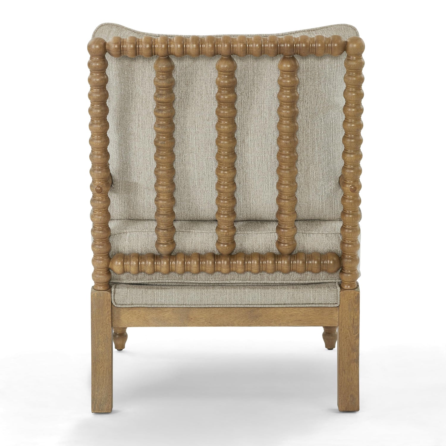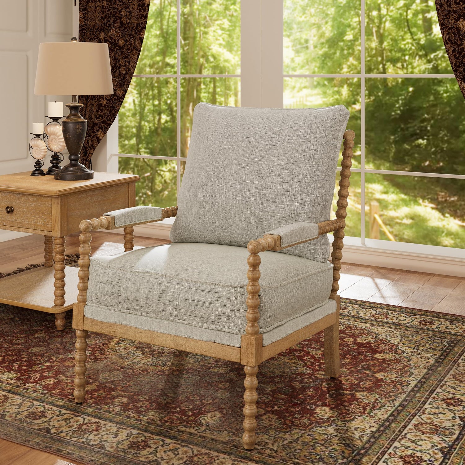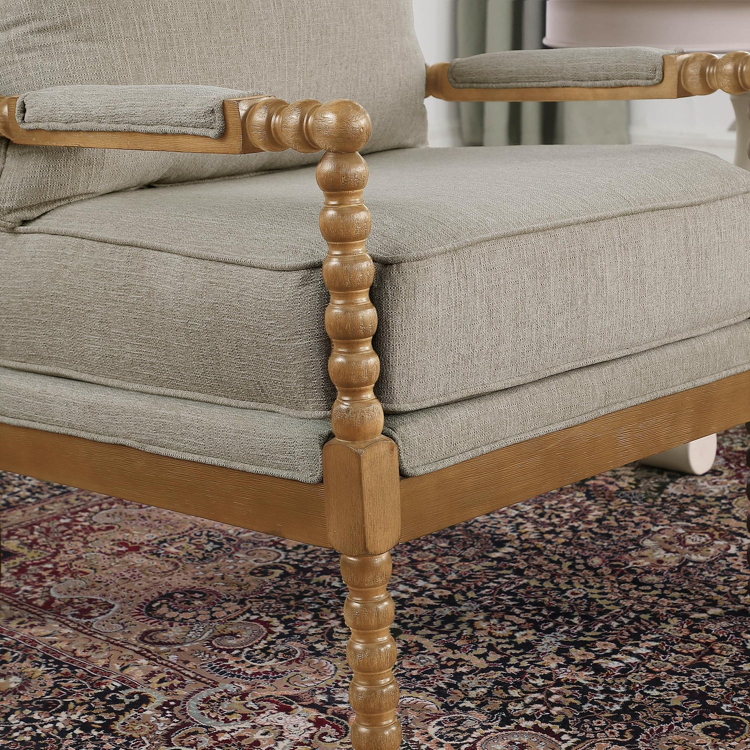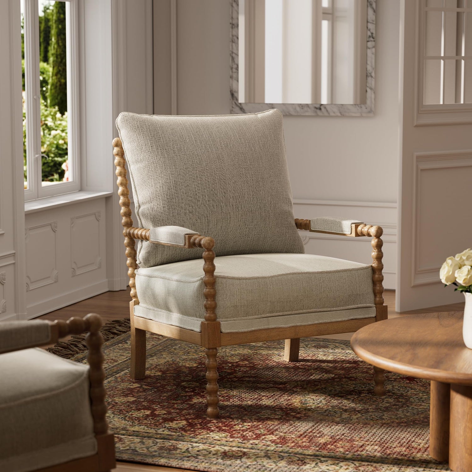 Morden Fort Linen Fabric Spindle Accent Chair with Wood Frame, French Style Accent Chairs with Padded Spring Seat and Armrest Pads, Brushed Base for Living Room Bedroom Farmhouse Office Balcony(Beige)