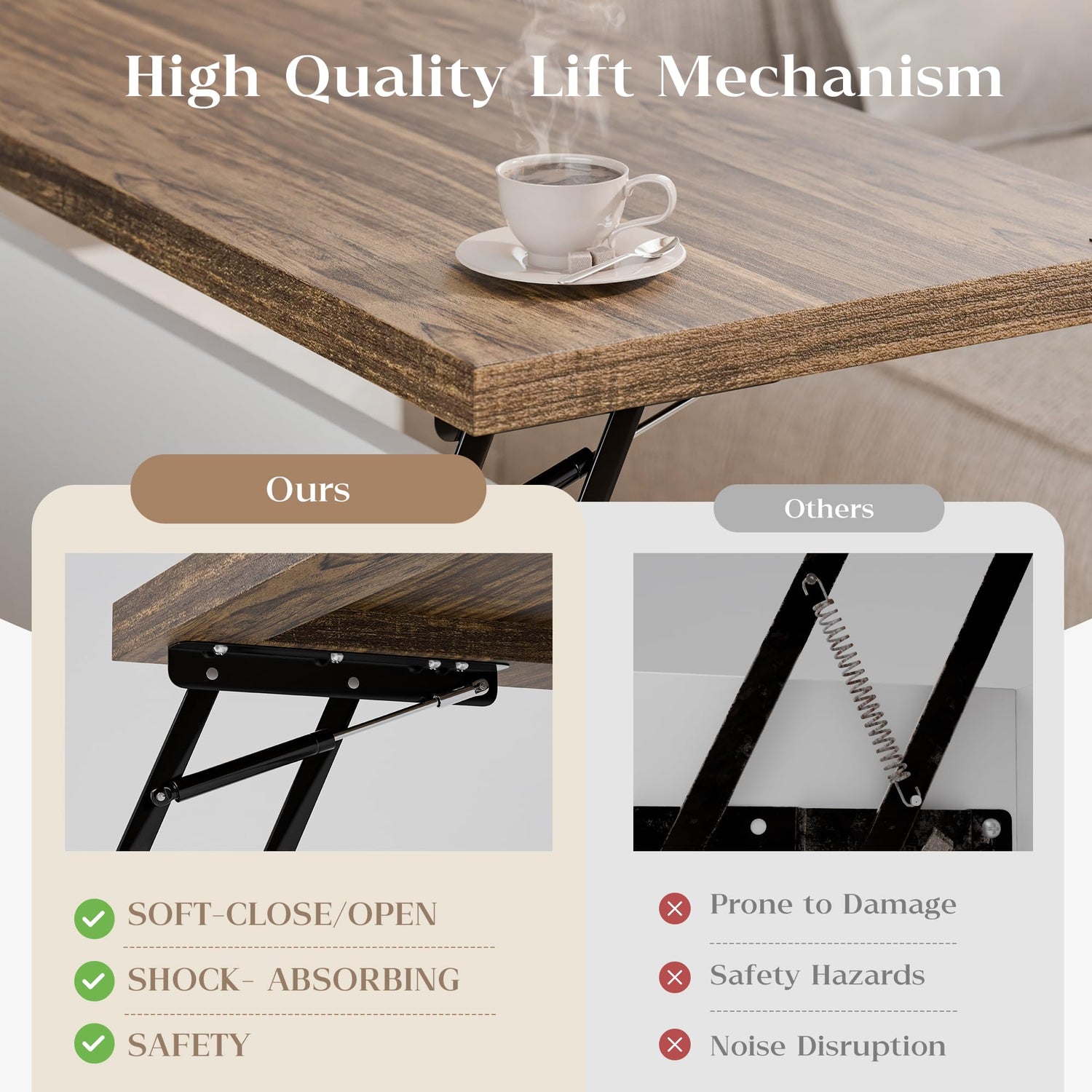 • Upgraded Lifting Design: Through rigorous testing, we've enhanced the lifting mechanism to ensure effortless and noiseless operation. This upgraded design eliminates concerns about finger injuries, especially for children. With a sturdy construction and carefully selected materials, our square coffee table guarantees stability and durability when properly assembled.