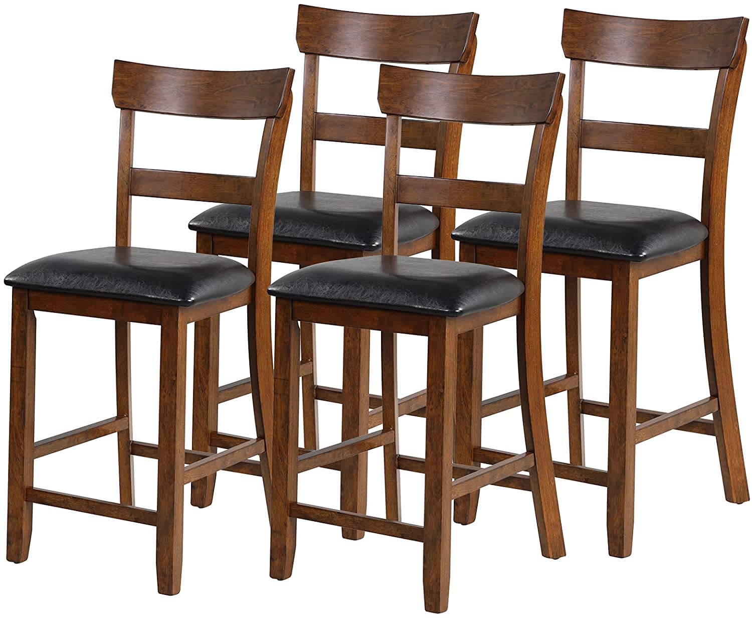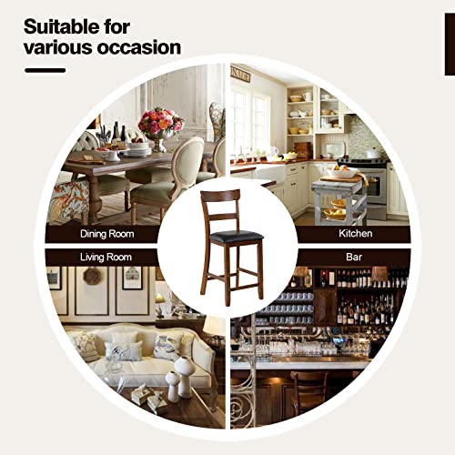 NAFORT Counter Height Bar Stools Set of 4, Farmhouse 25.5” Wood High Dining Chairs, Counter Stools with Back for Kitchen Restaurant Bar, Rubberwood Legs & Black PU Leather Cushion