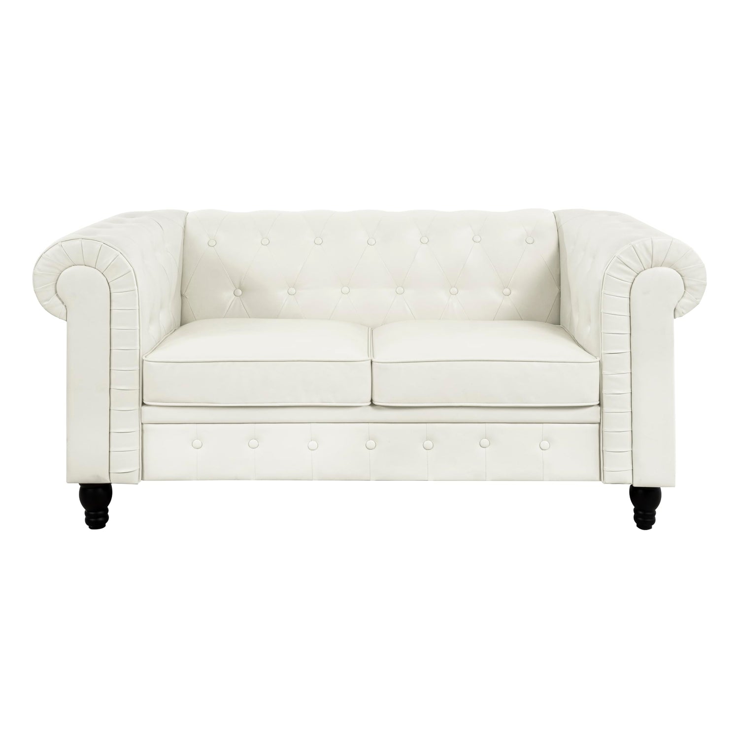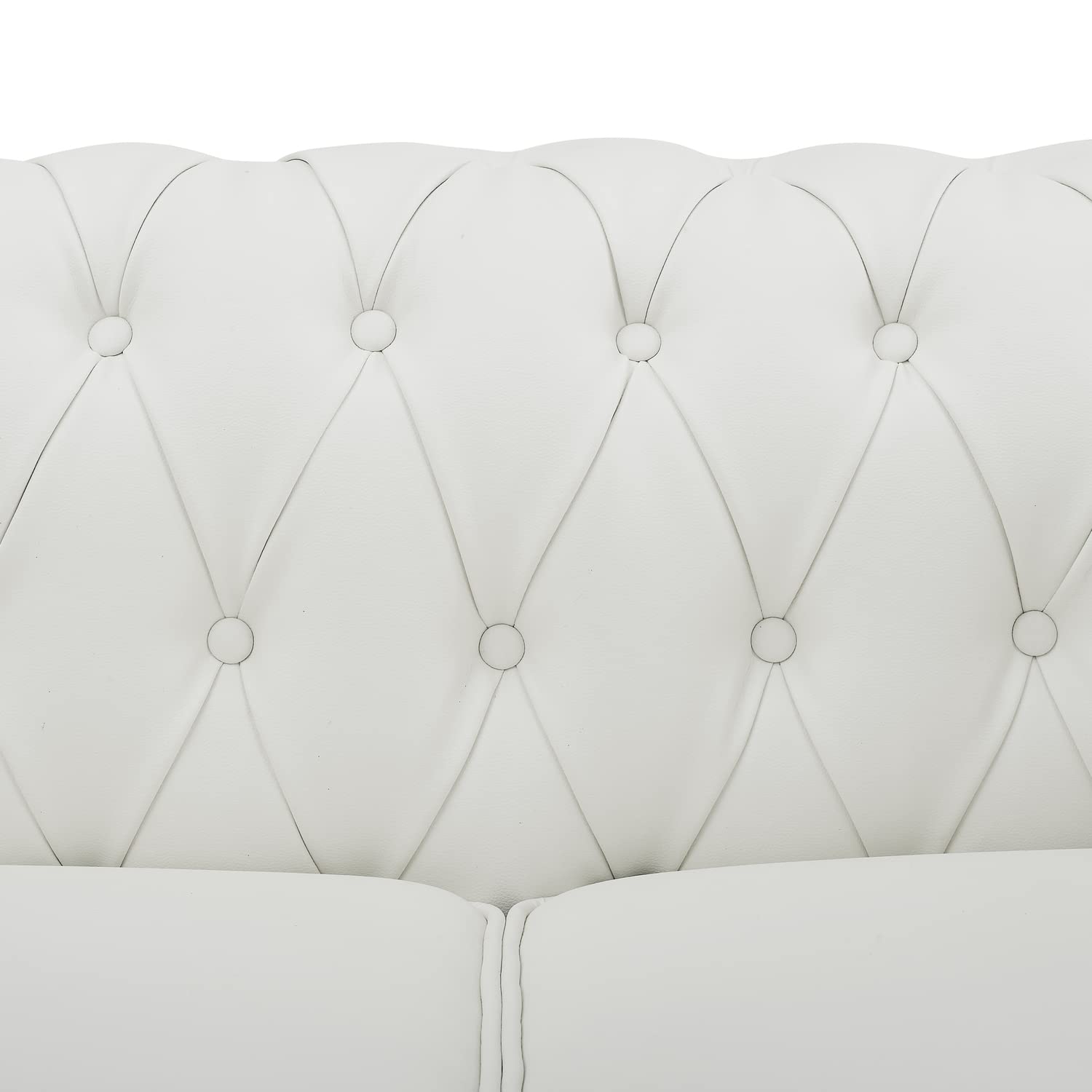 Naomi Home Chesterfield Leather Loveseat, Mini Sofa Love Seat, Small with Rolled Arms, Tufted Cushions 2 Seater Loveseats for Small Spaces, Living Room White