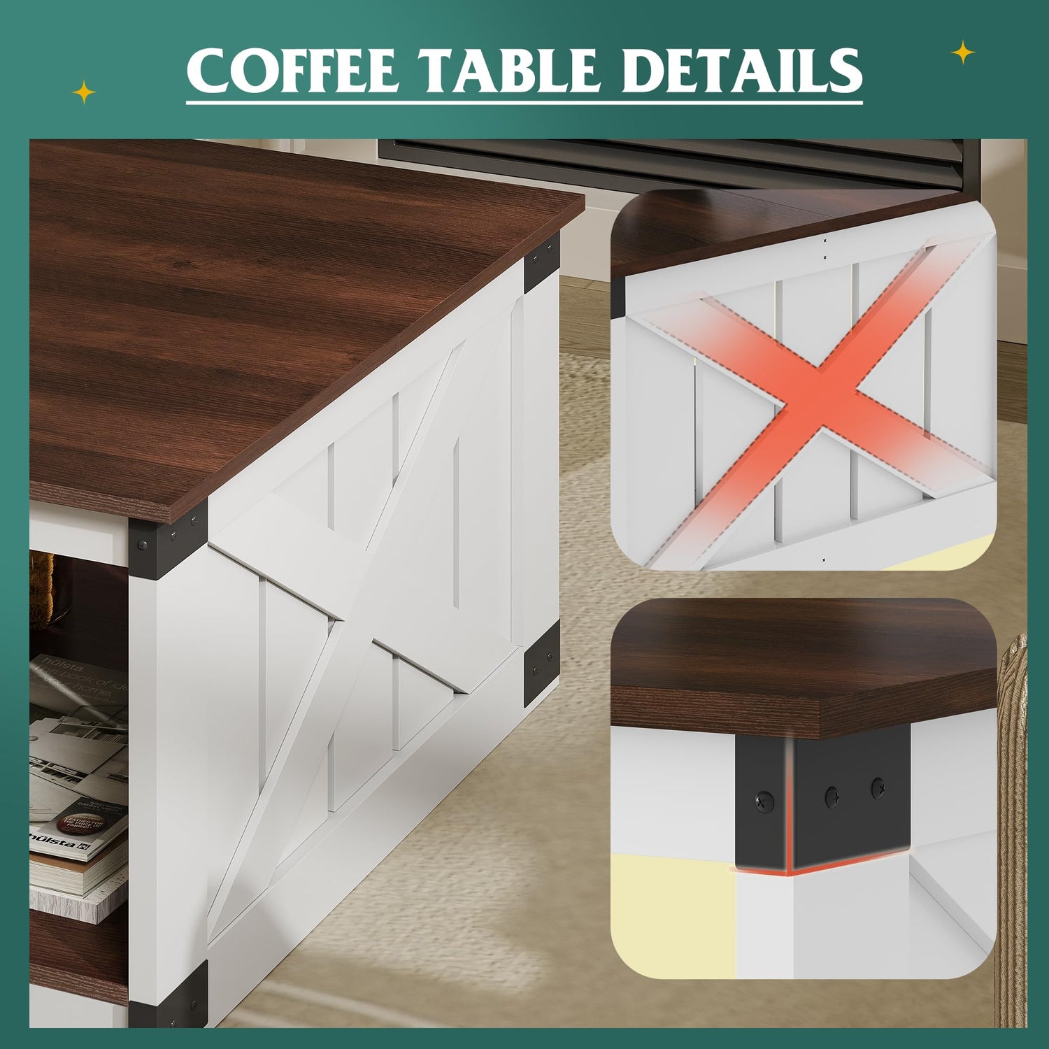 Details: NICBEX Farmhouse Coffee Table, 31.5" Square Coffee Table with Open Storage, Wood Rustic Cocktail Table Center Table for Living Room, Brown