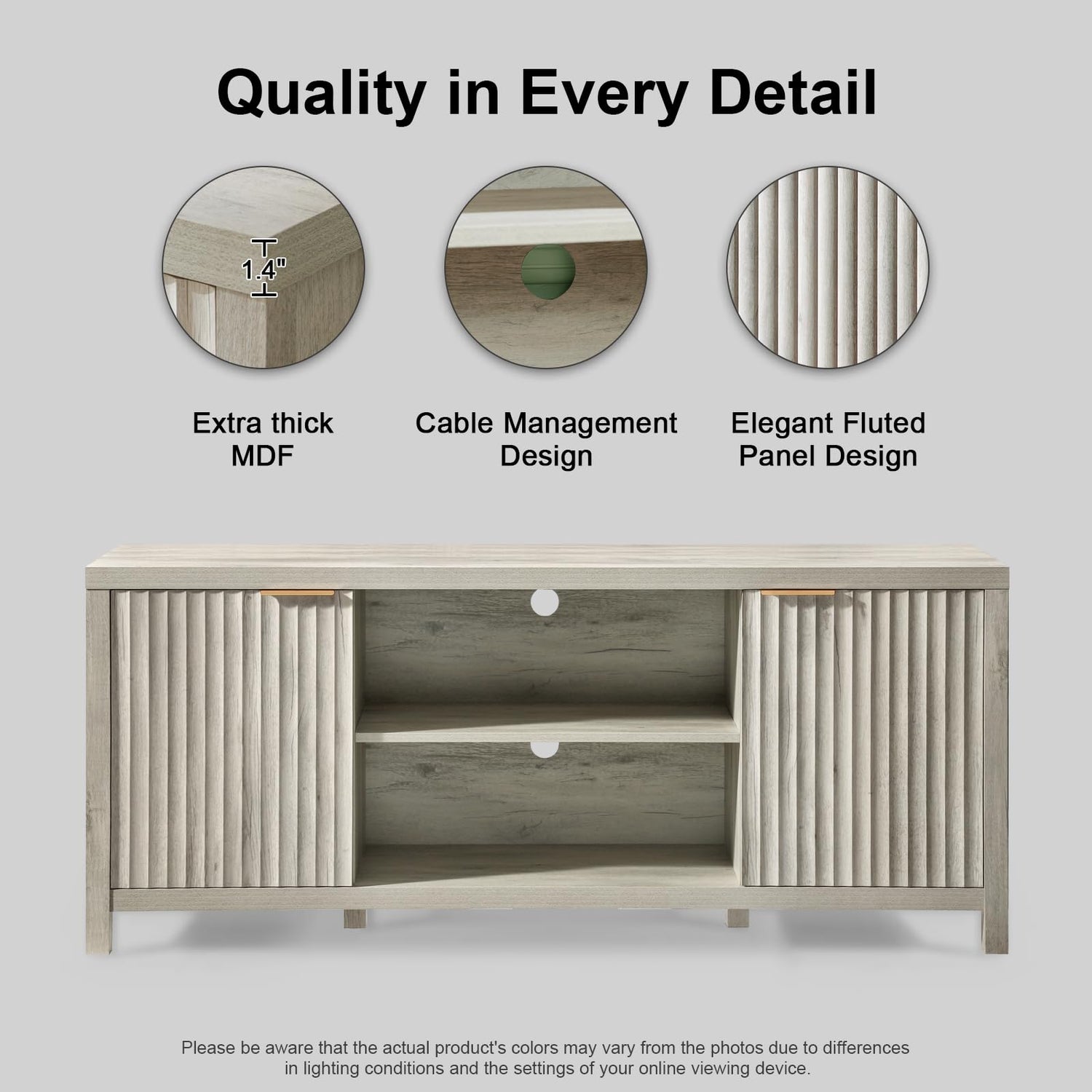 - Stylish Fluted Panel Design: Crafted from premium decorative laminate, the modern tv stand boasts a clear and fluted panel design. The robust construction not only enhances its visual appeal but also ensures a high level of toughness, minimizing the risk of deformation and standing the test of time.