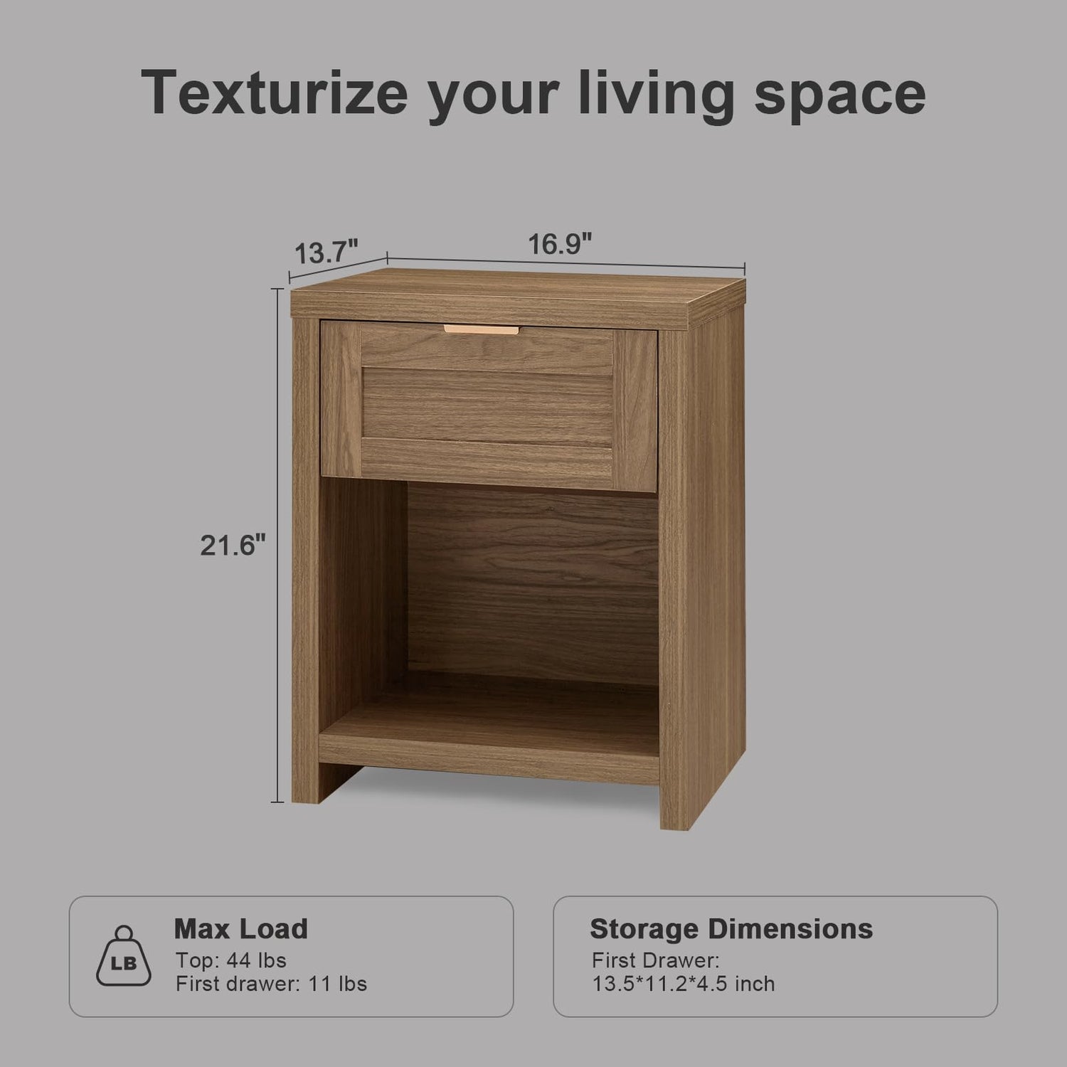 - 【Versatile Nightstand with Ample Storage】Designed with One drawer, our nightstands provides ample storage and display space, night stands for bedrooms set of 2 catering to your diverse needs. Whether in your bedroom or living room, it's a versatile addition that complements your space and offers the functionality you desire.