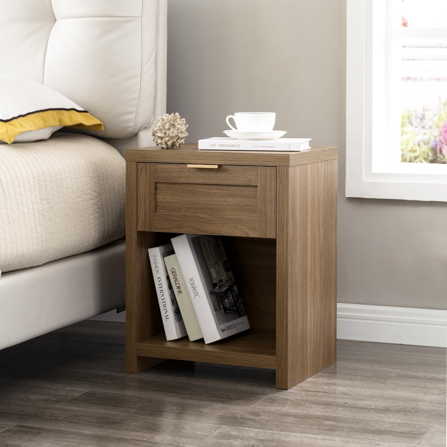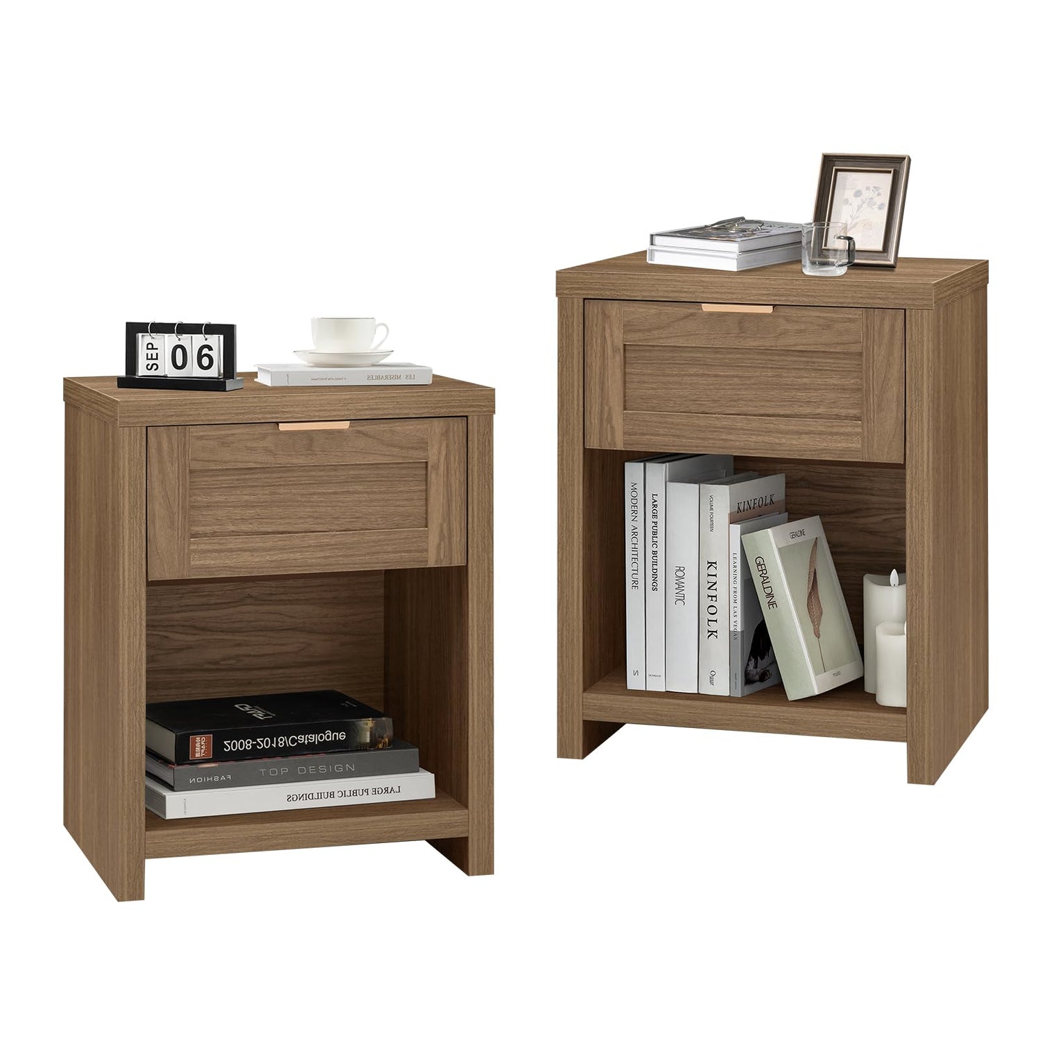 OAKHAM HOME Nightstand, Boho End Table with Drawer and Storage Shelf, Accent Table, Minimalist Sofa/Bed Side Table, for Bedroom Set of 2 (Walnut)