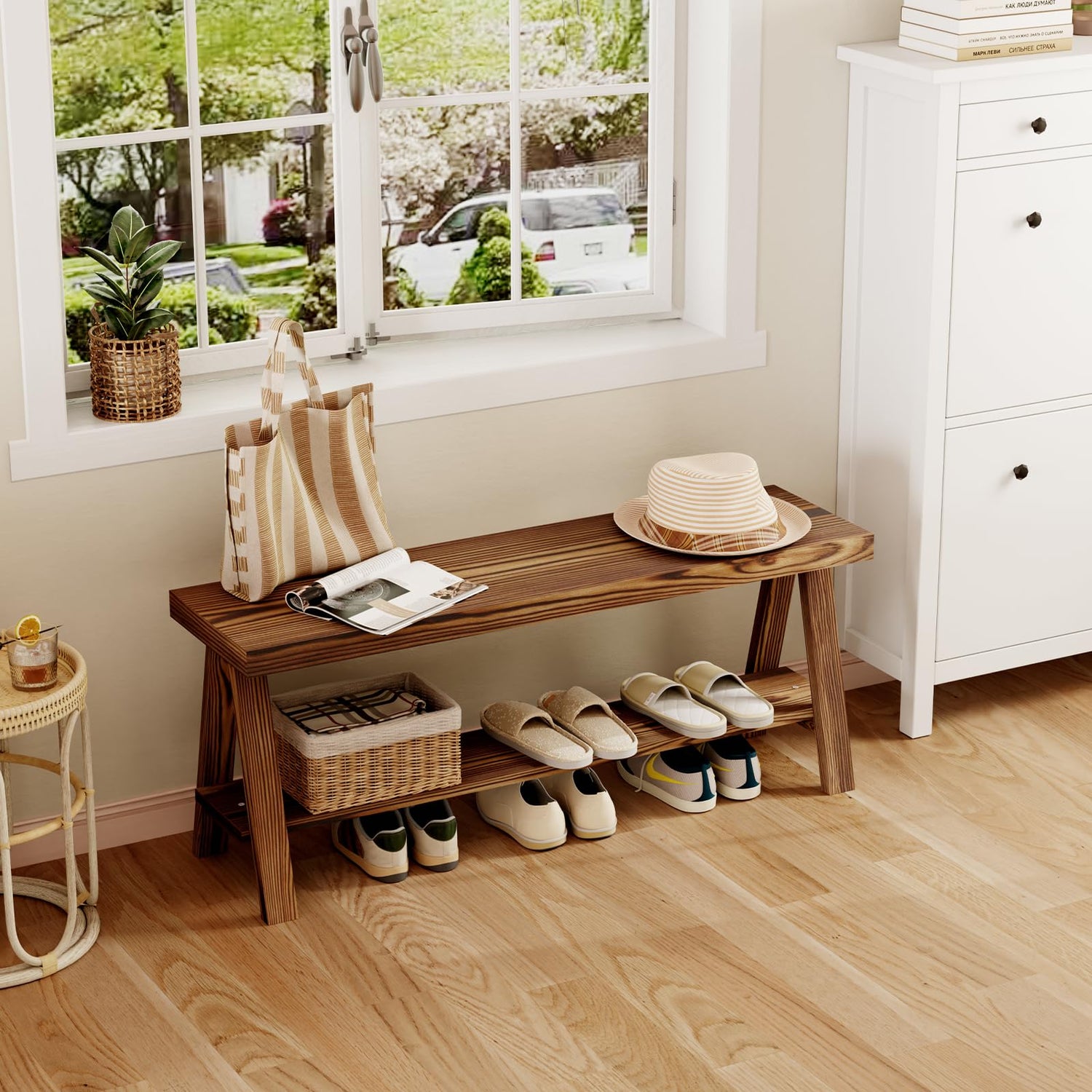 Oenalw 43.3" Farmhouse Bench, End of Bed Bench,Solid Wood Entryway Bench, Indoor Bench, Rustic Wood Bench Seat for Indoor,Entryway, Dining Room, Living Room, Hallway, end Bed and Front Door