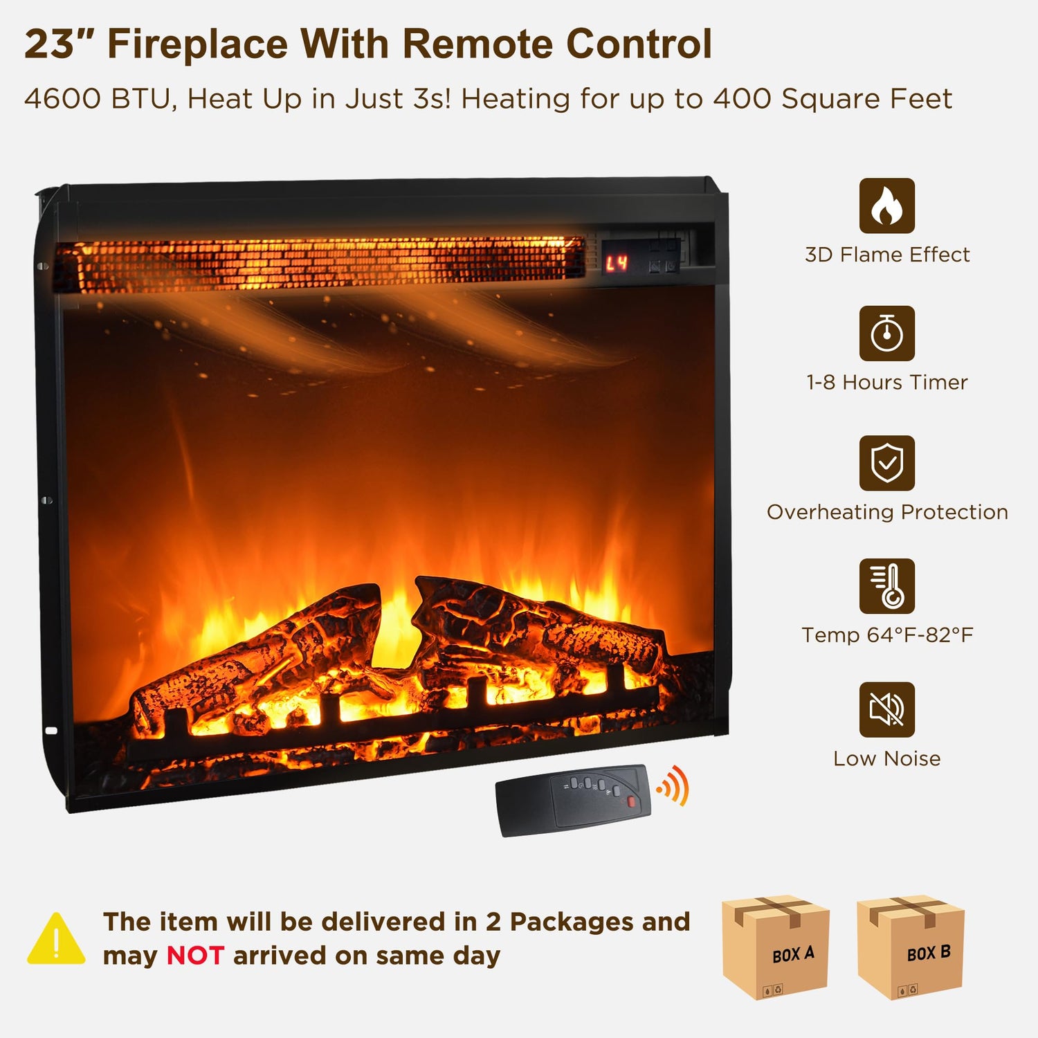 - 23" Electric Fireplace with Remote Control: Enjoy the mesmerizing dance of lifelike flames, Our fireplace heaters feature realistic 3D flame effects, glowing logs, and embers. No firewood, dust, smoke, or clean up, creating a clean and cozy relaxing space for you. Flame and heating are controlled separately, creating a warm and dreamlike atmosphere all year round. You can freely control the power switch and easily adjust the flame brightness, temperature, and timer with the included remote control or operating panel