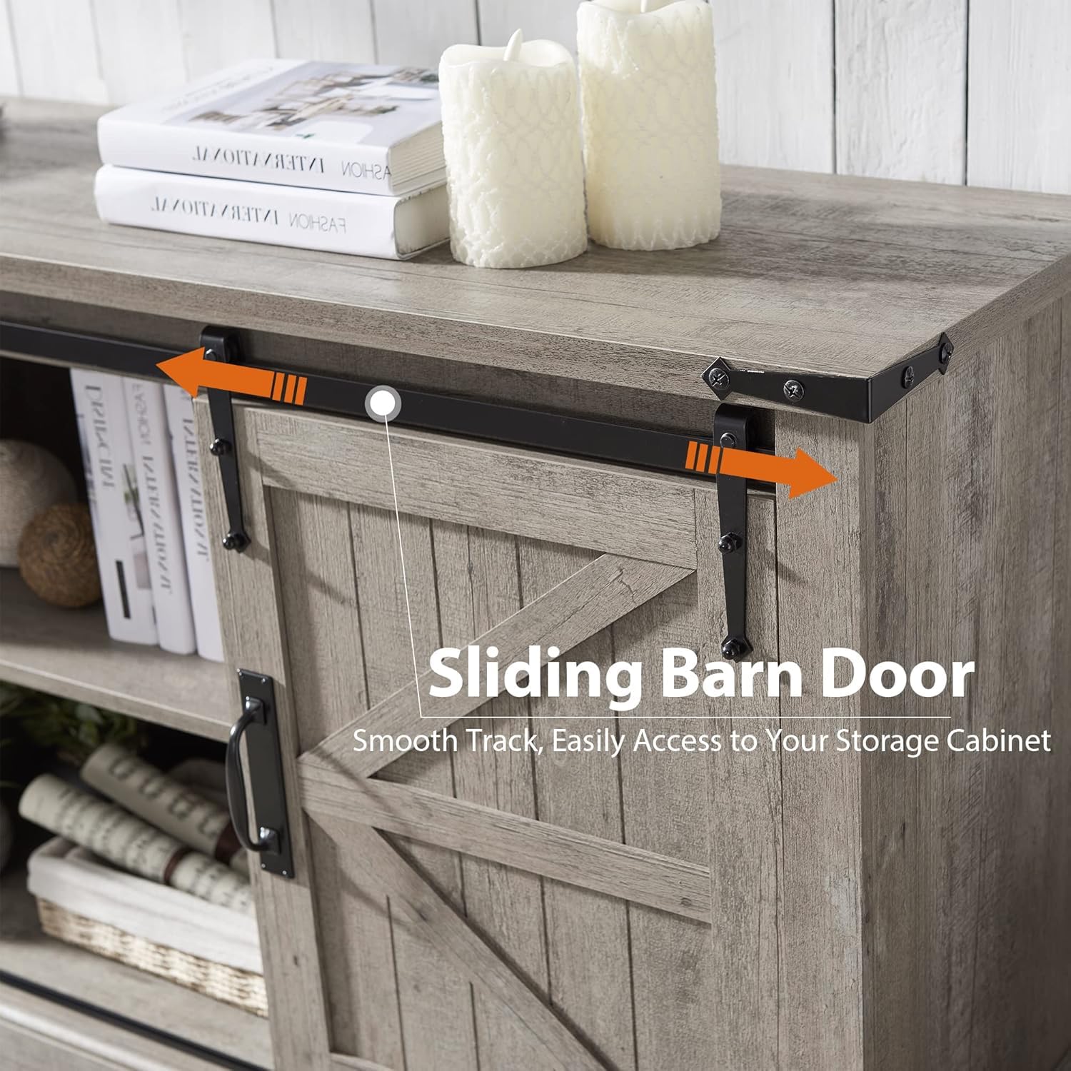 - SLIDING BARN DOORS: Easy access to cabinets and shelves via metal track, designed for smooth slide. Special barn-door patterns are on front and two sides