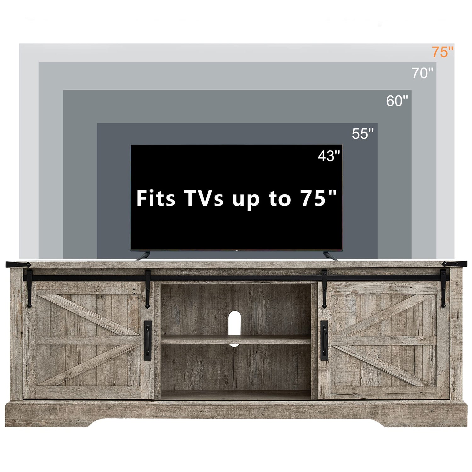 - DIMENSION: 66" W x 16"D x 25" H. Fits TVs up to 75 inches (farmhouse tv stand for 75 70 65 55 inch TVs etc.)