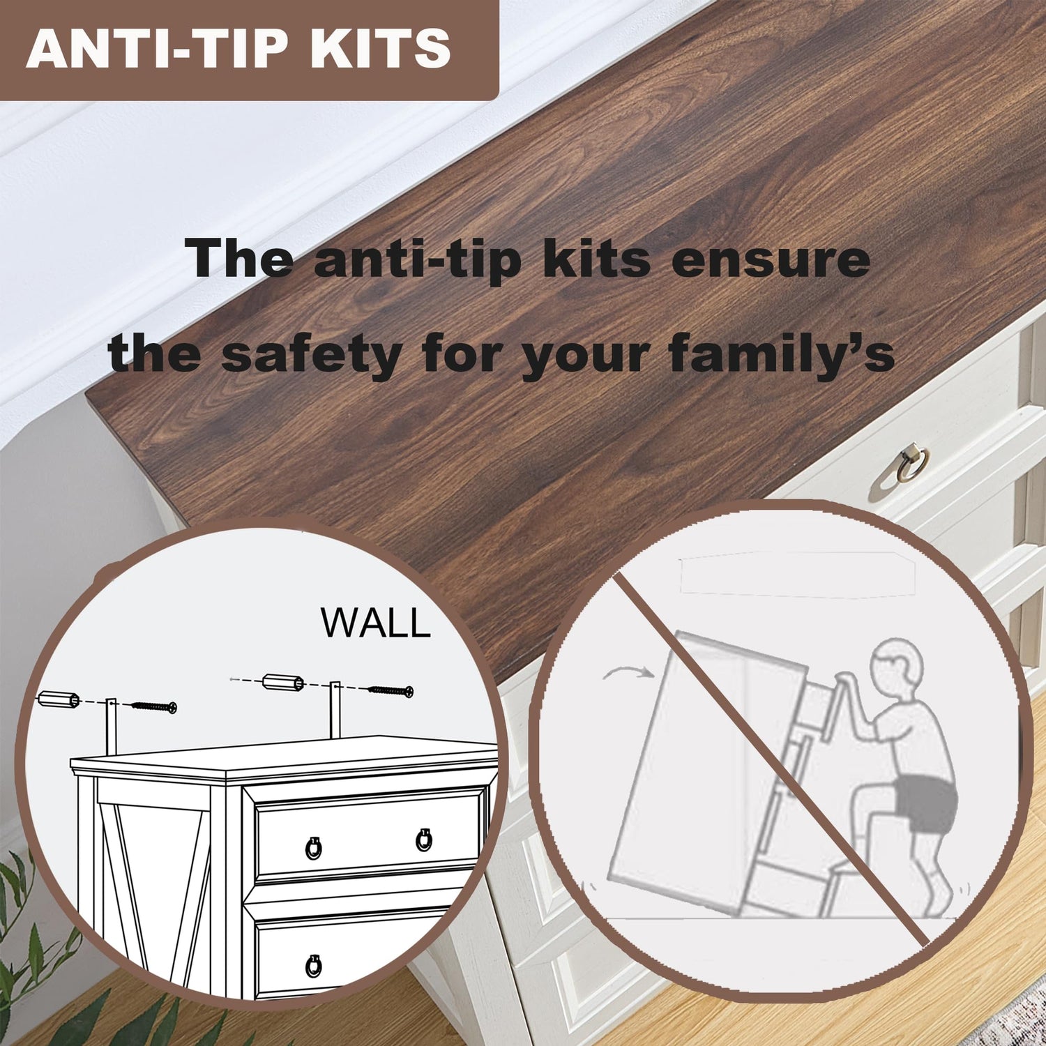 • Durable and Sturdy: Made from premium engineered wood, this tall chest of drawers offers exceptional durability. The 1.2" thick tabletop can support a weight of up to 300 pounds, and anti-tip ensure added safety