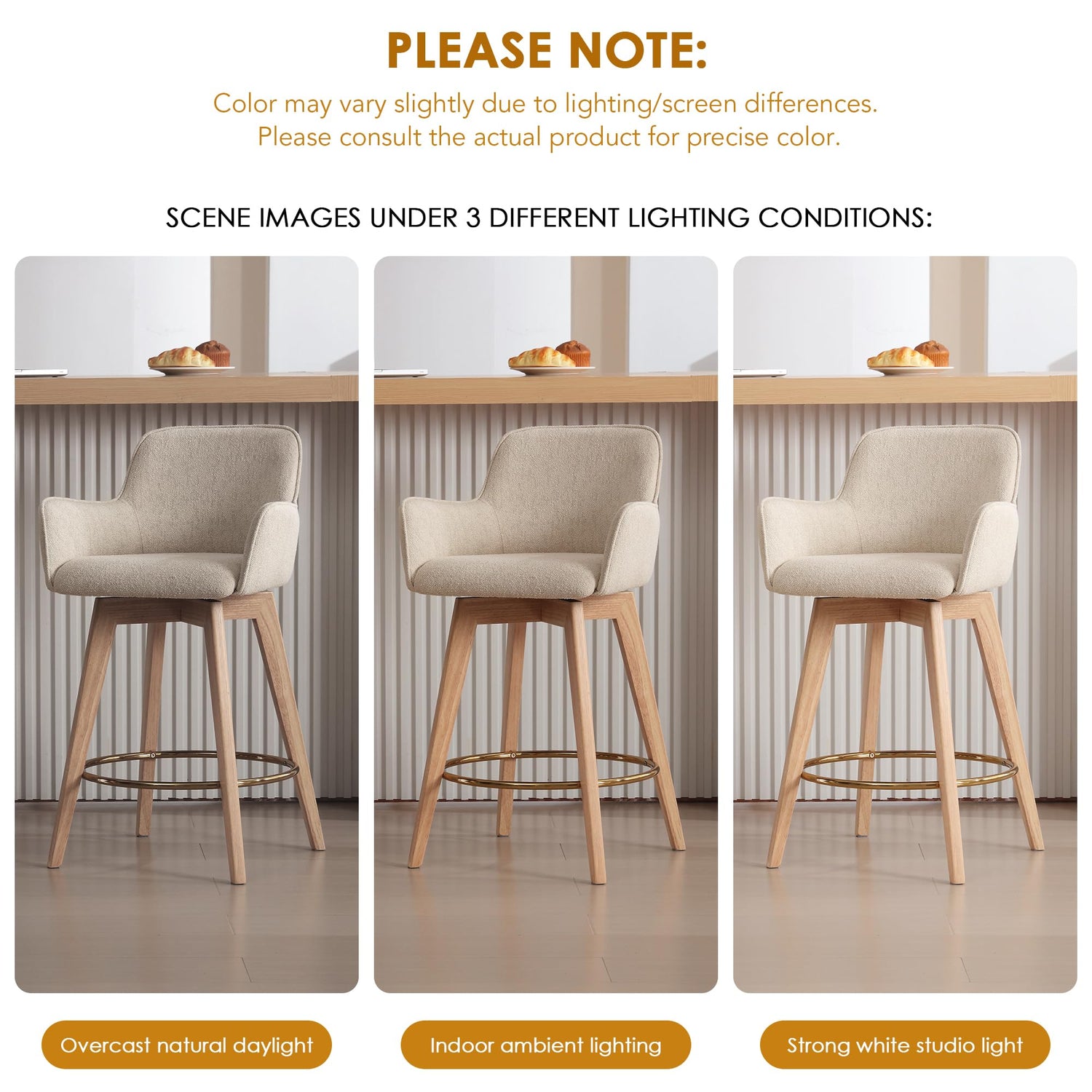 ONEVOG Modern 26" Counter Height Bar Stools Set of 4, Swivel Kitchen Island Tall Chairs with Back, Arm, Footrest and Solid Wood Legs, Linen Fabric Upholstered Farmhouse Barstools for Countertop, Beige