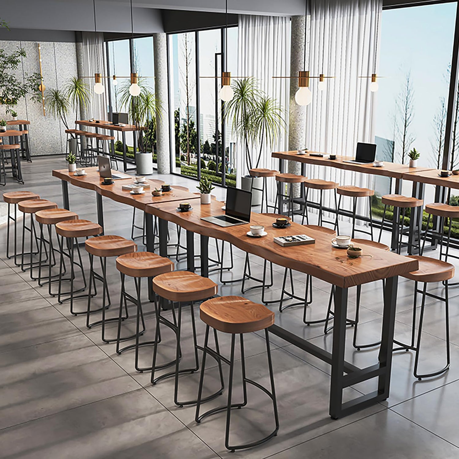 - [Sturdy Metal Frame]Featuring a robust metal frame, the bar table ensures outstanding stability and can support heavy items with ease. The industrial - style metal legs not only provide reliable support but also enhance the modern aesthetic of the table.