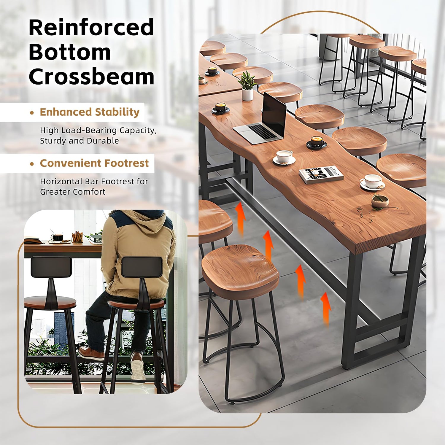 - [Live Edge Design] This bar table is crafted from high-quality solid wood with a 5cm thick top, ensuring durability, strength, and natural charm. The edge design reflects the unique contours and grain of the tree, making each piece unique.