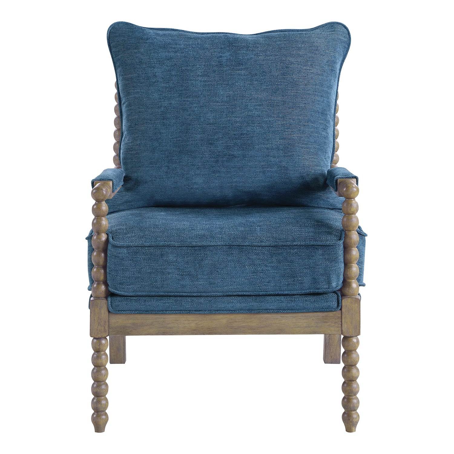 Details: Create a designer feel to your décor with the classic Fletcher Spindle Chair. Deep, inviting cushions allow for cozy relaxation. Enjoy traditional styling thanks to a solid wood frame with beautiful turned, spindle detail and a lightly distressed finish. An inner coil spring cushion surrounded by dense foam and sinuous spring support will keep your chair looking beautiful for years. Kiln dried construction with a 100% polyester fabric elevate your living room’s style and add sophisticated seating to any family room. Incorporated in 1987, Office Star Products has become a leader in commercial office and residential furniture. Office Star Products - Furniture for Your World.