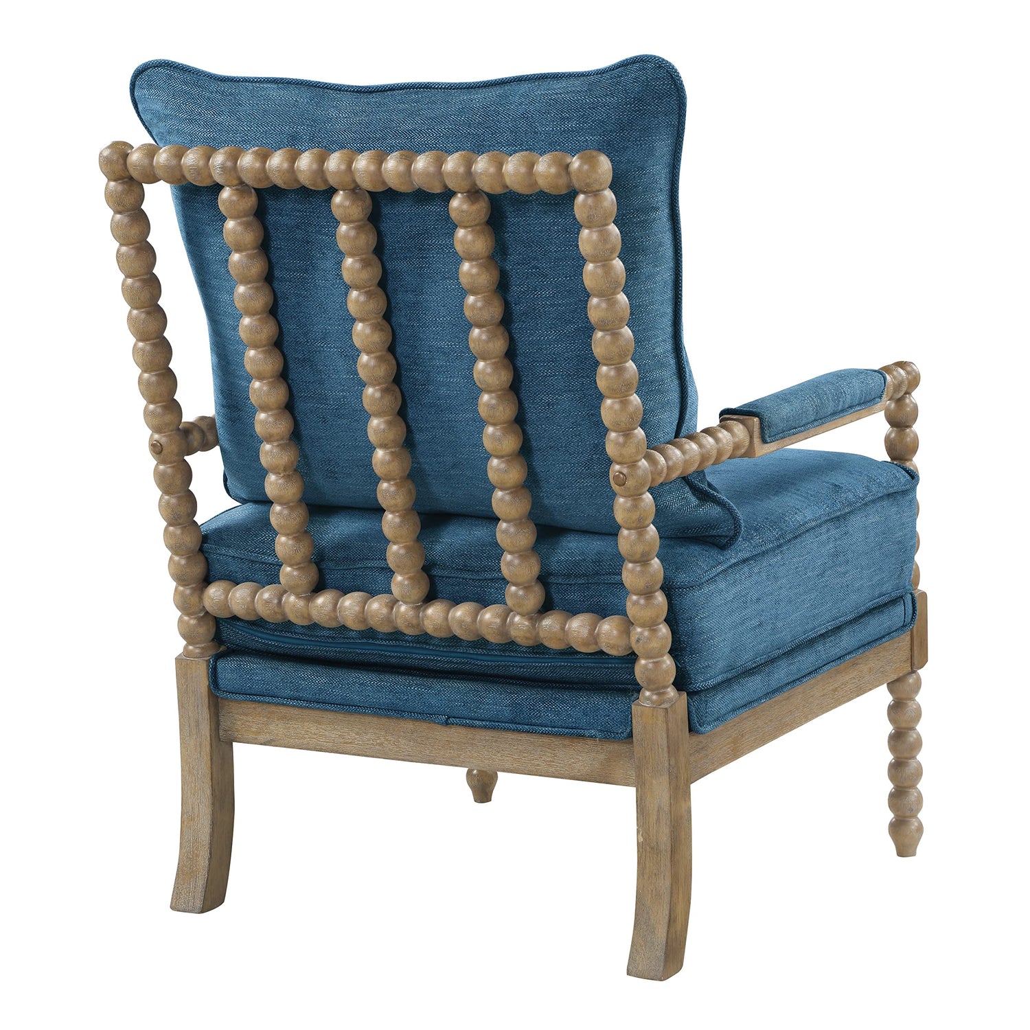 OSP Home Furnishings Fletcher Spindle Accent Chair with Rustic Brown Finish, Navy Blue Upholstery