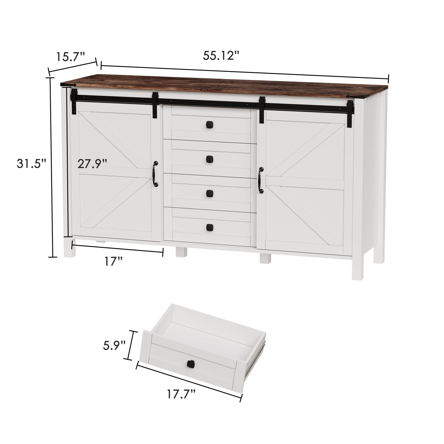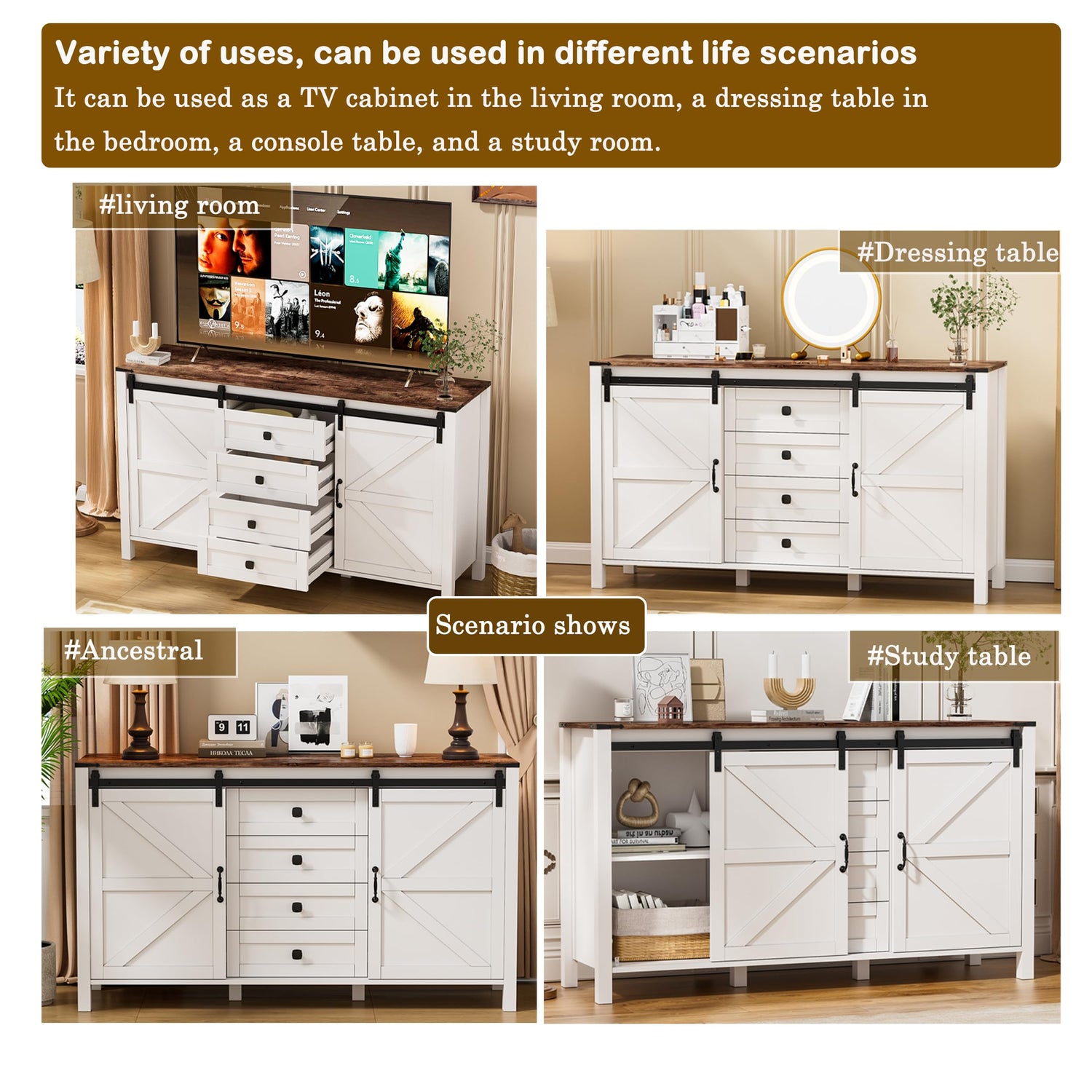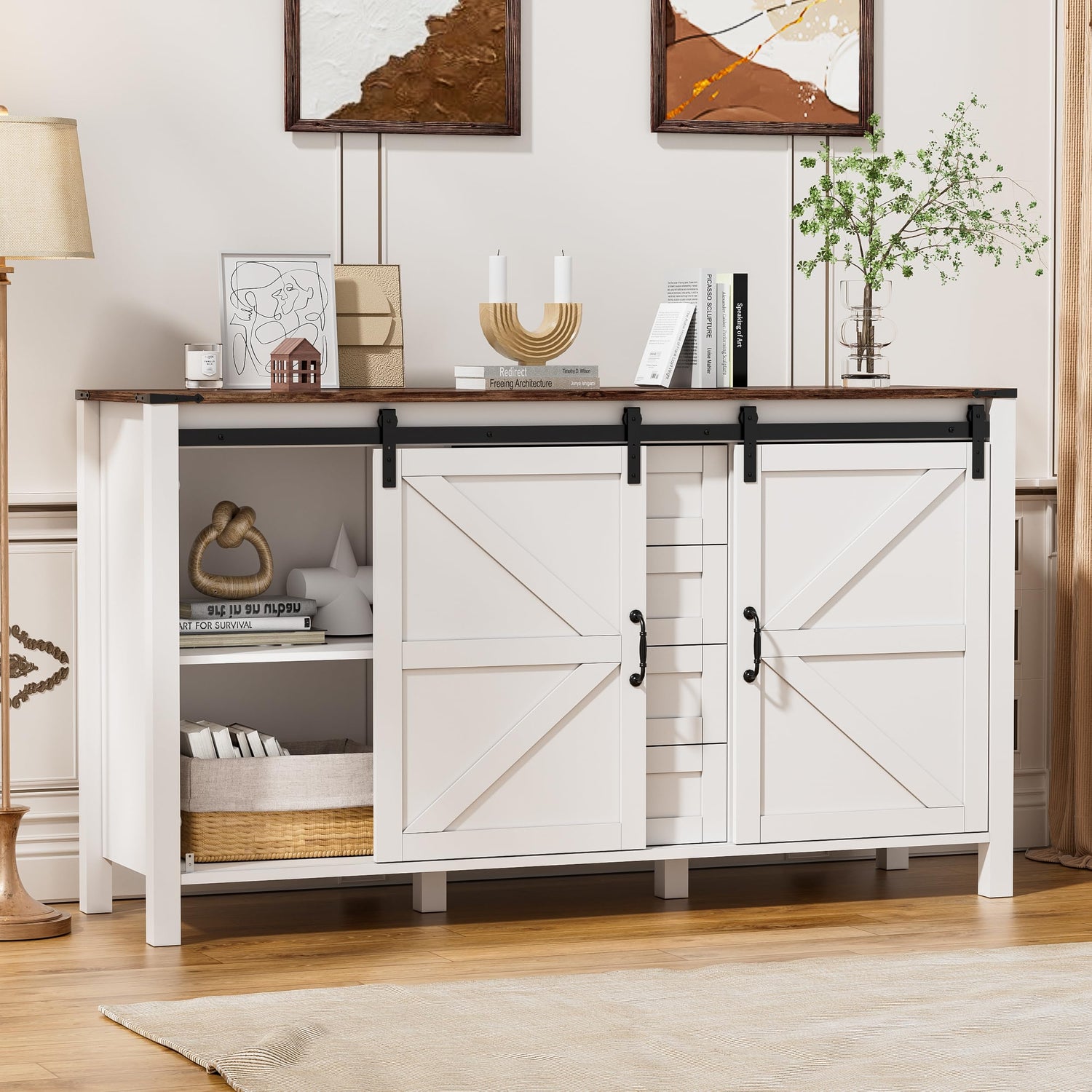 PAKASEPT Farmhouse Dresser Chests for Bedroom, Sliding Barn Doors TV Stand, Tall Wide Wood Country Rustic Chest of Drawers, Wood Storage Dressers for Living Room Hallway Entryway