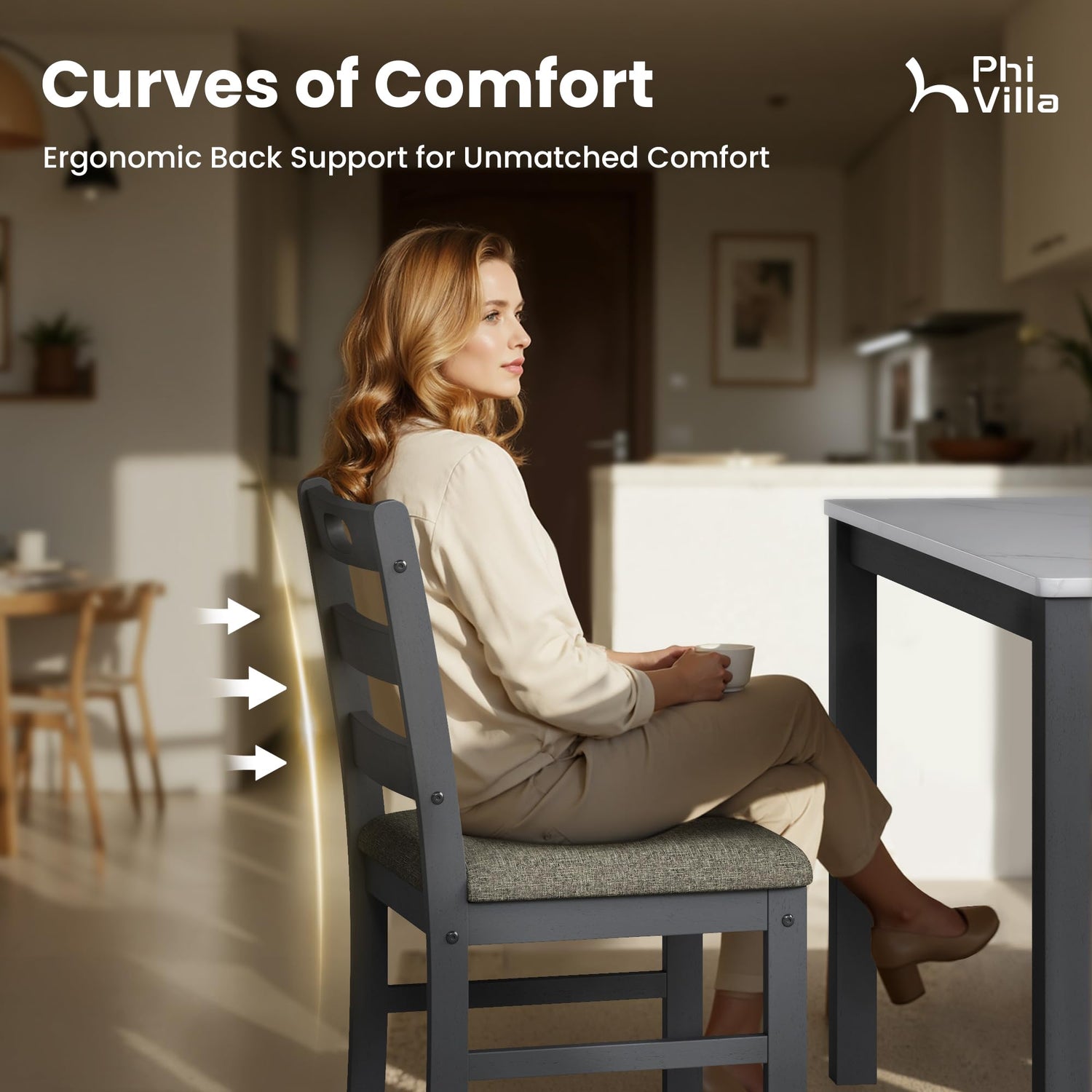 - 【Premium Solid Wood】Made with a solid rubber wood frame and a a durable faux marble tabletop, this 5-piece dining table set delivers long-lasting durability. Both the kitchen table and chairs support up to 300 lbs, offering stable use for everyday meals