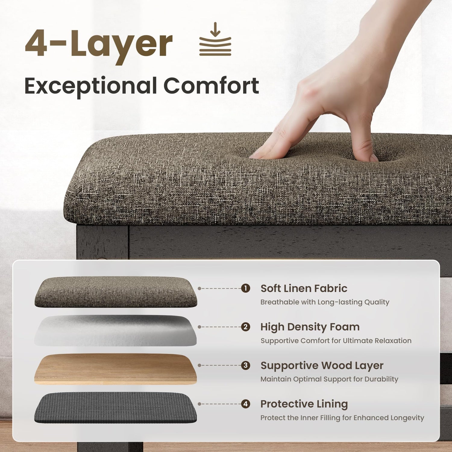 - 【Comfort Upholstered Padded Chair】Each wooden chair features a 4-layer padded cushion with soft linen fabric and high-density foam for lasting comfort. The built-in handle allows easy movement, while the rounded edges add safety. With an ergonomic backrest for solid support, these chairs are perfect for daily meals and long conversations in small or medium dining spaces
