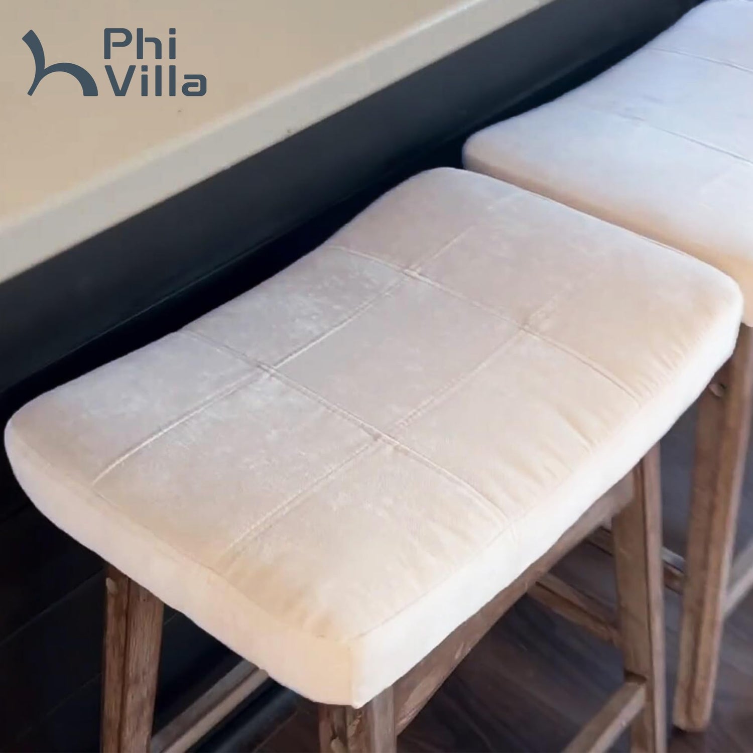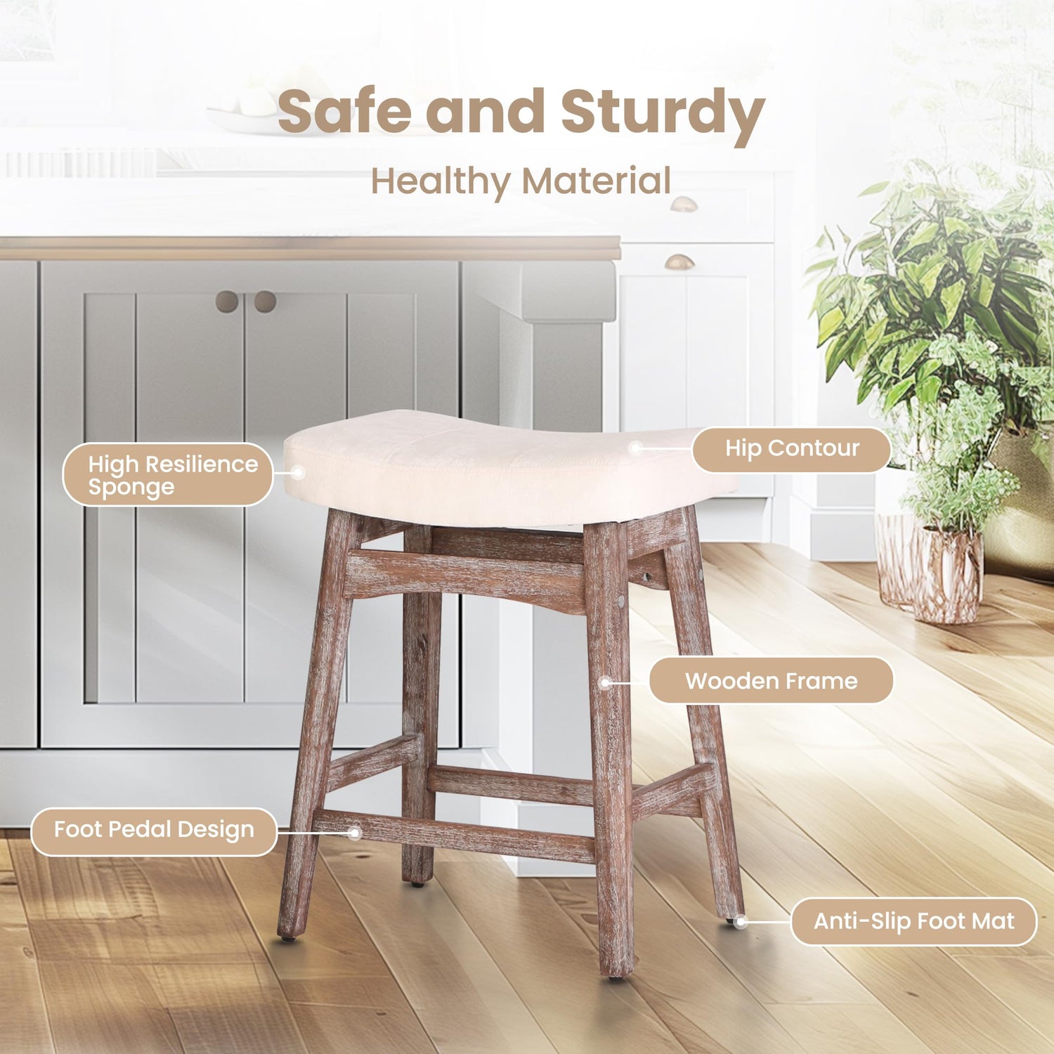 PHI VILLA Farmhouse Bar Stools Set of 2 - Wood Bartools with Upholstered Saddle Seat, 24 inch stools for Kitchen Counter Set of 2