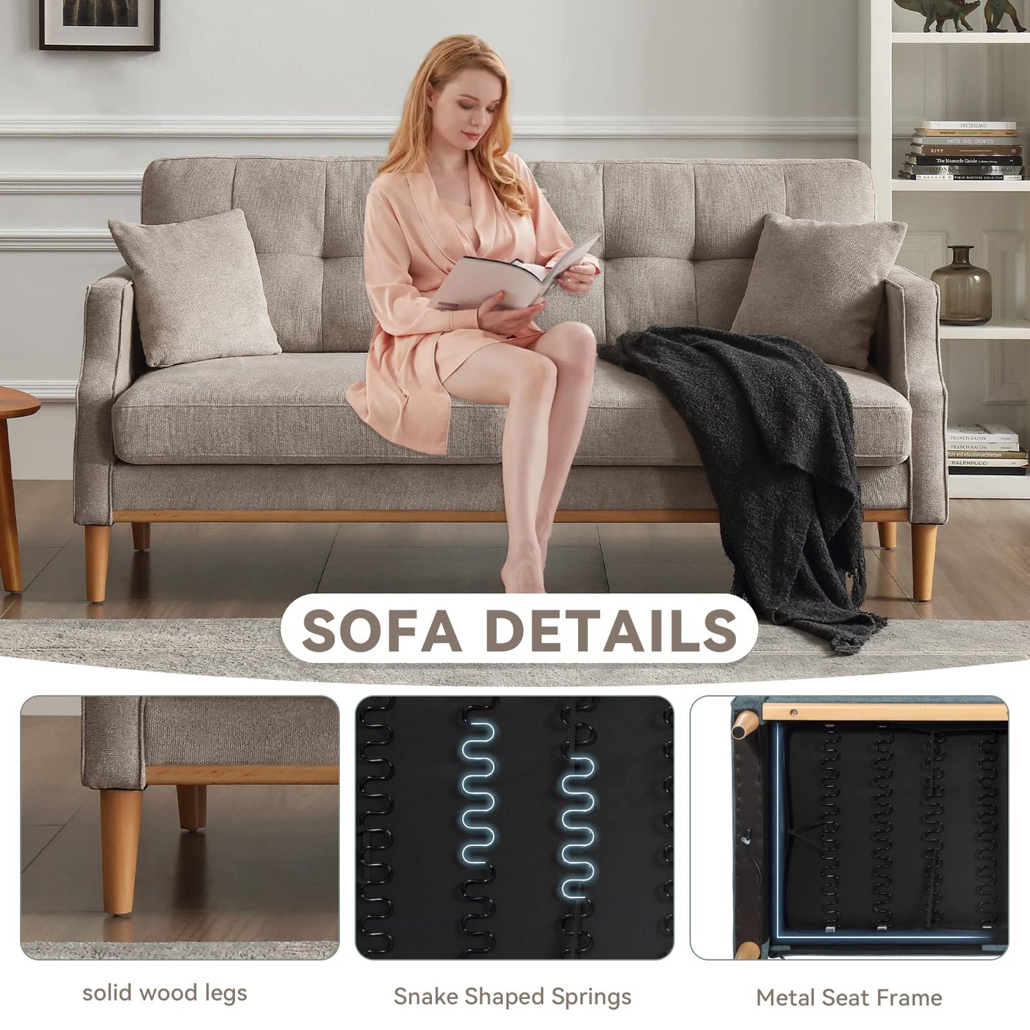 Plococo 70" Sofa, Mid Century Modern 3 Seat Sofa Couch, Comfort Experience Loveseat with Thick Cushions,Waterproof Fabric and USB Port, Beige Grey