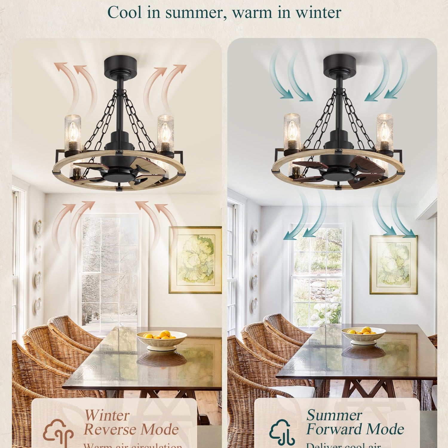 - Wagon Wheel Fandelier Design: This 20 inch farmhouse ceiling fans with lights features a retro wood grain finish, embodying the charm of country style. Ideal for the bedroom, dining room and living room, and recommended for rooms up to (10 ft x 10 ft)