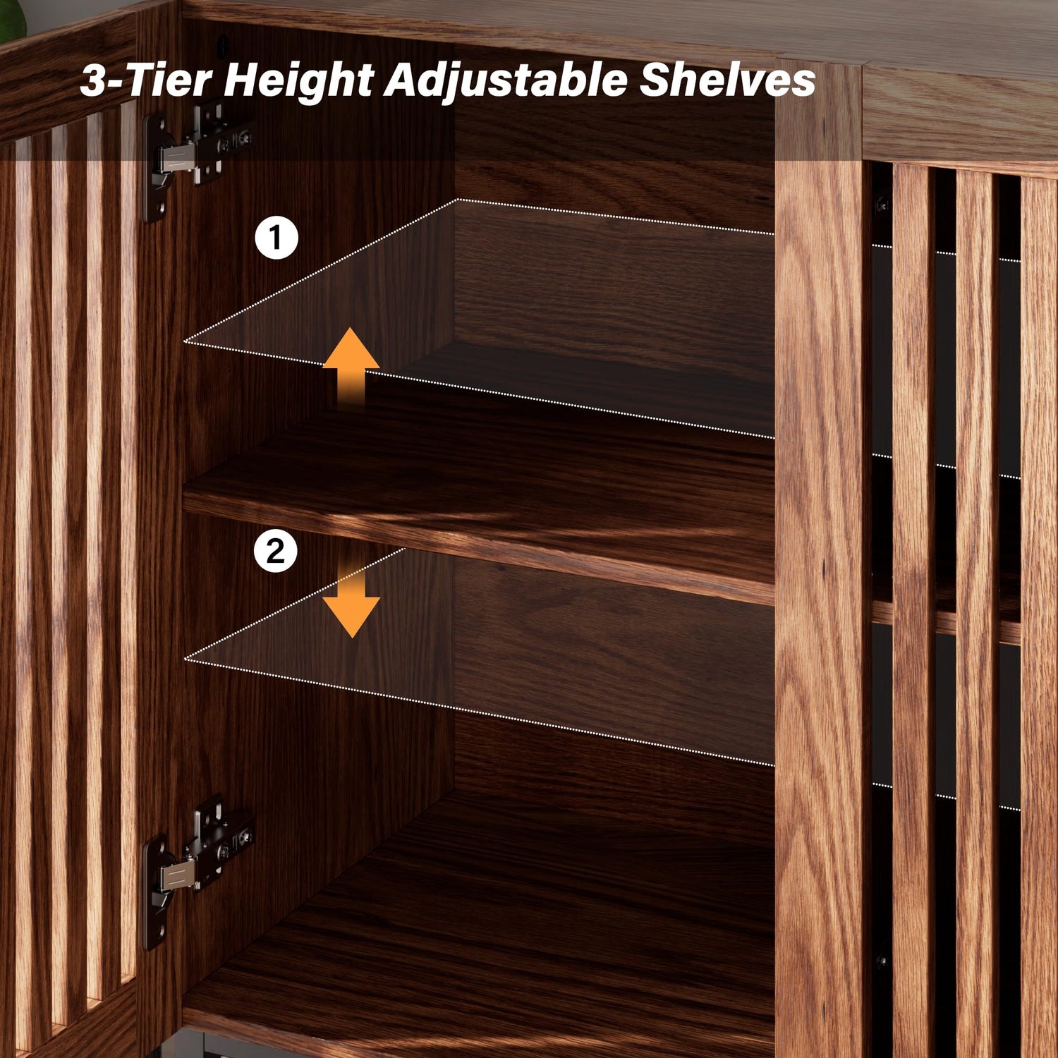 • Unique Design: This Farmhouse TV stand lies in its unique design that seamlessly merges rural charm with modern elegance.The grating door design adds a touch of rustic style, while also allowing for easy access to the storage compartments.