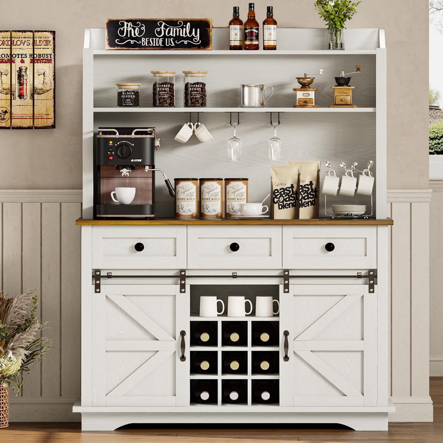 • Classic Farmhouse Look: Love that cozy farmhouse vibe? Our coffee bar features a barn-door design with a bright white finish and a rich oak-colored countertop. It’s the suitbale mix of rustic and modern, adding warmth to your kitchen, dining area, or living room